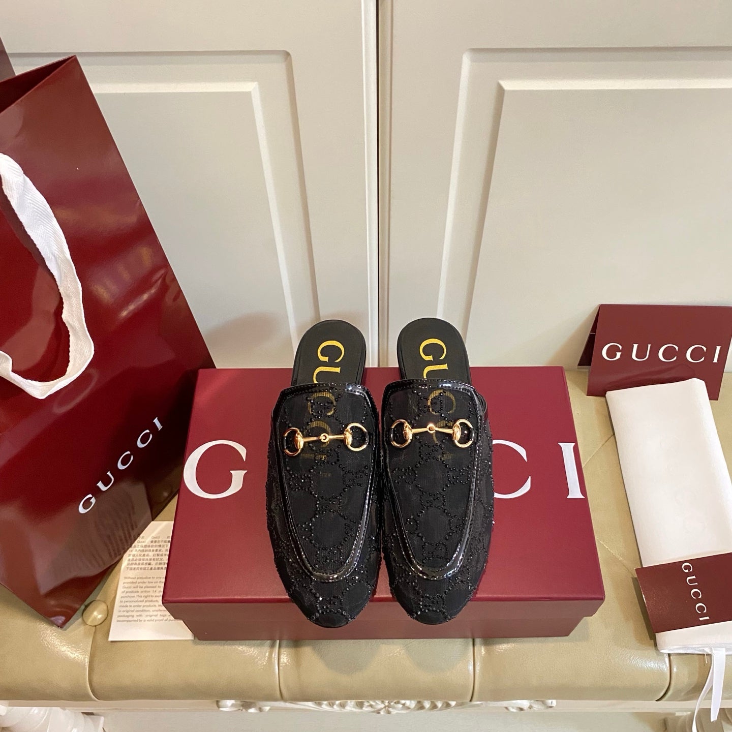 GG Princetown Slipper Black Calfskin Tuscan Wool