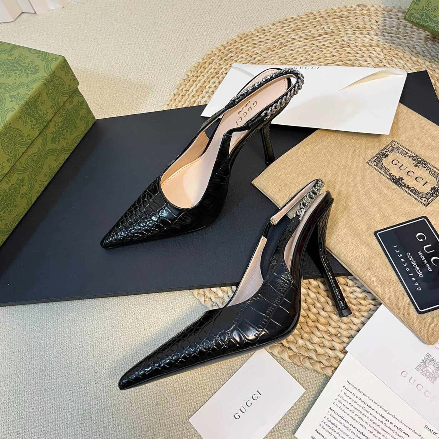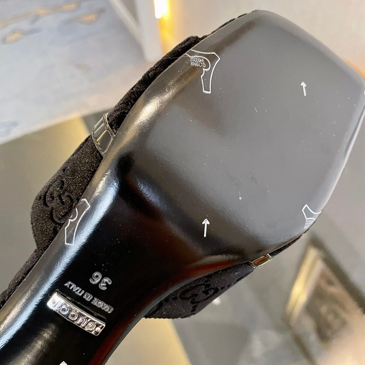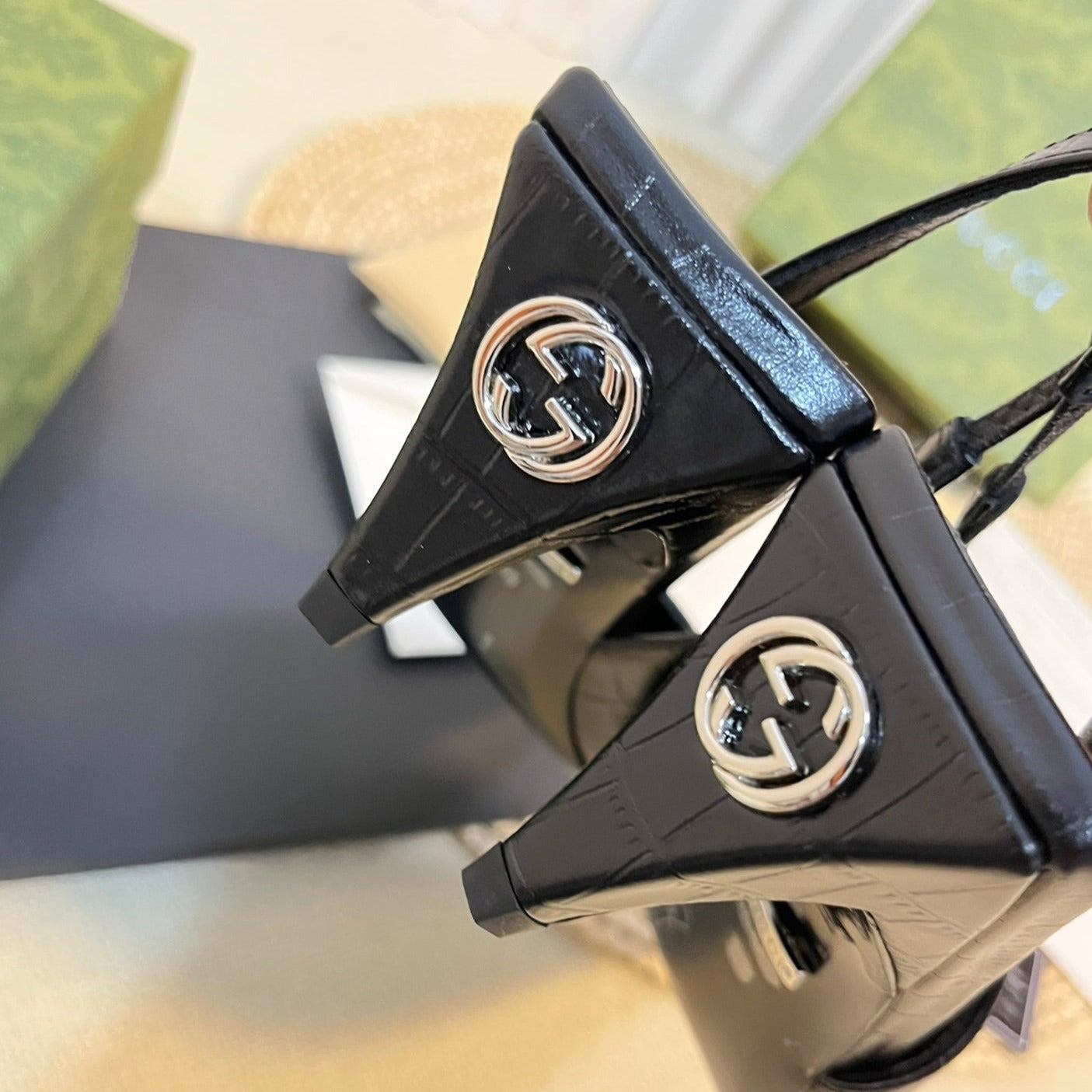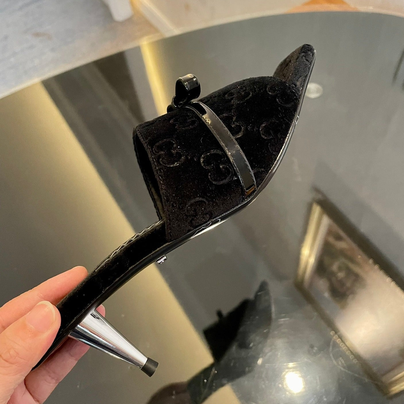 GG Vintage High Heel Slippers Black