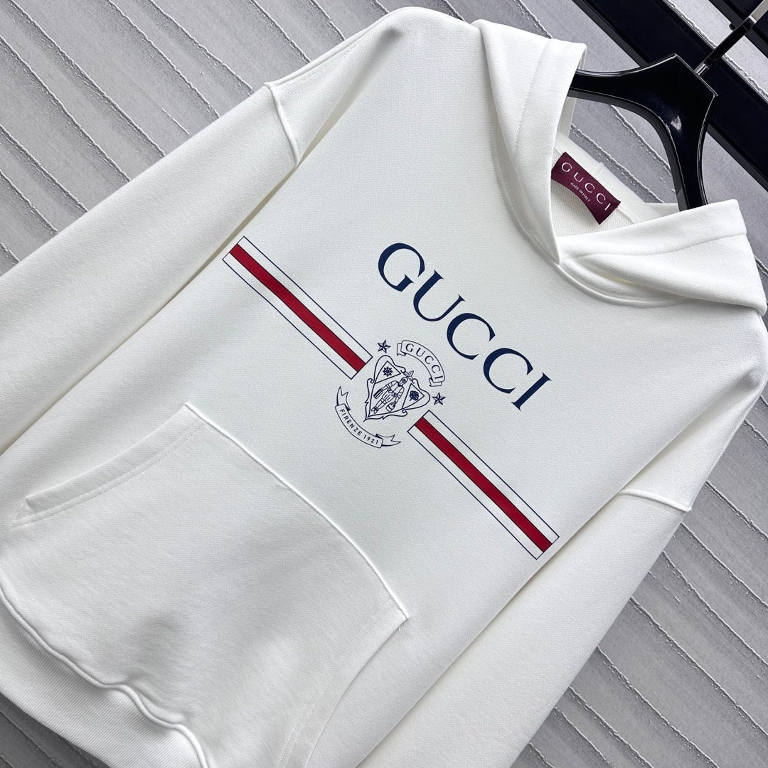 GG White Blue Printed Cotton Jersey Hooded Sweatshirt