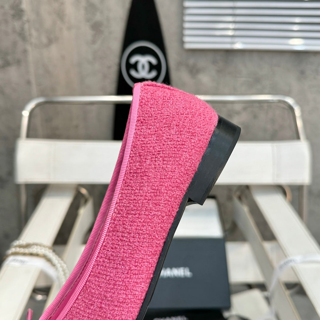 BALLET FLAT LIGHT PINK LAMBSKIN WITH WHITE BOW