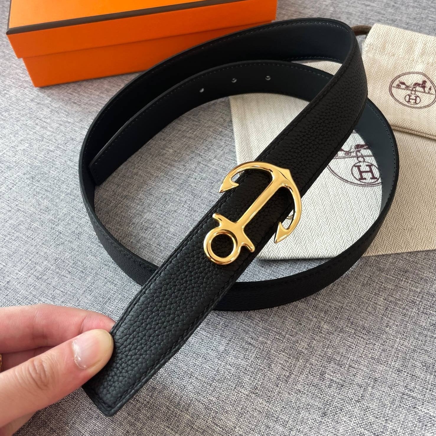 H CONSTANCE BELT 38MM GOLD BUCKLE BLACK CHOCOLATE LEATHER