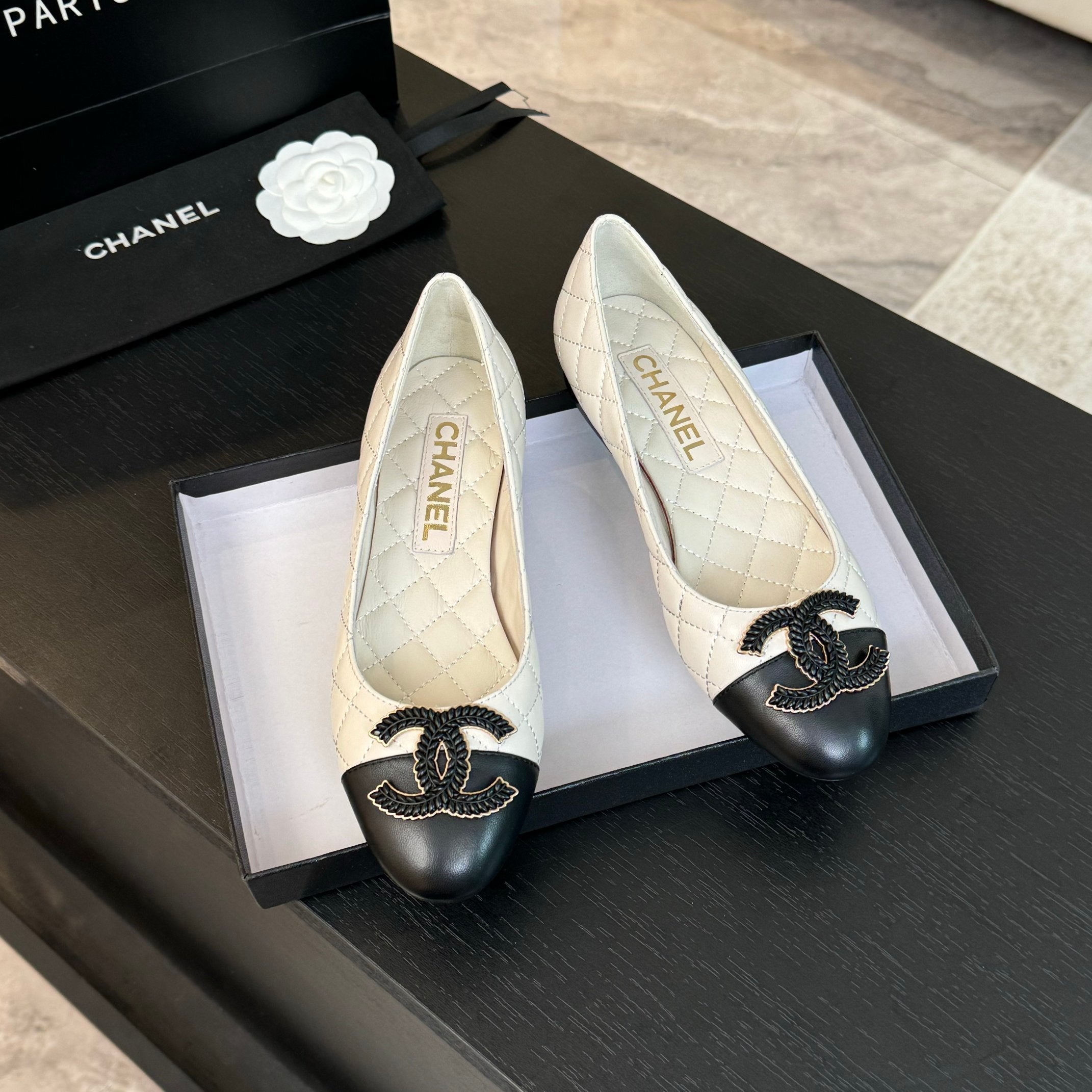BALLET FLAT WHITE CALFSKIN AND FABRIC
