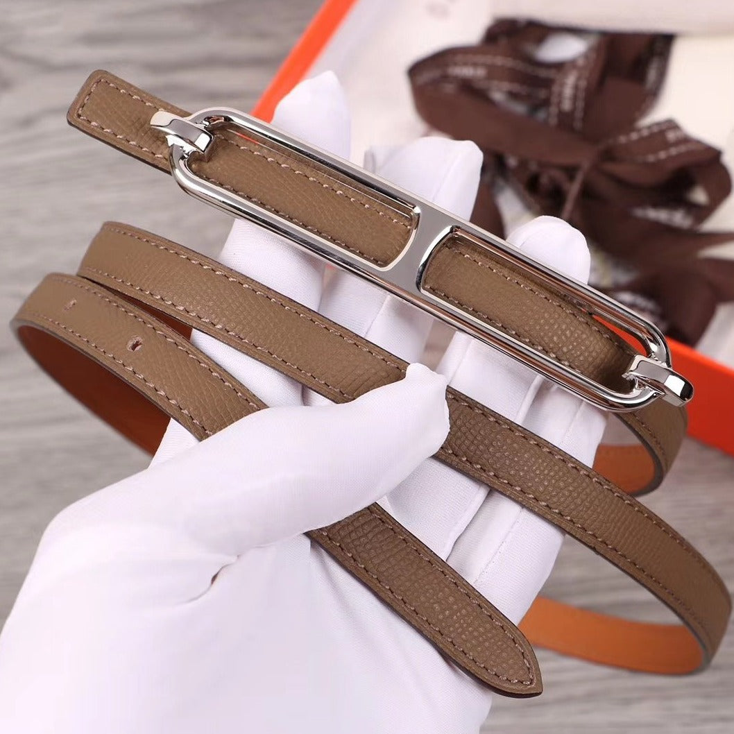 H WOMEN'S BELT 13MM SILVER BUCKLE BROWN GRAY LEATHER