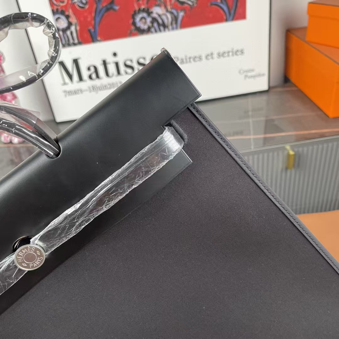 Herbag 31 Toile Black Canvas Black Cowhide Leather