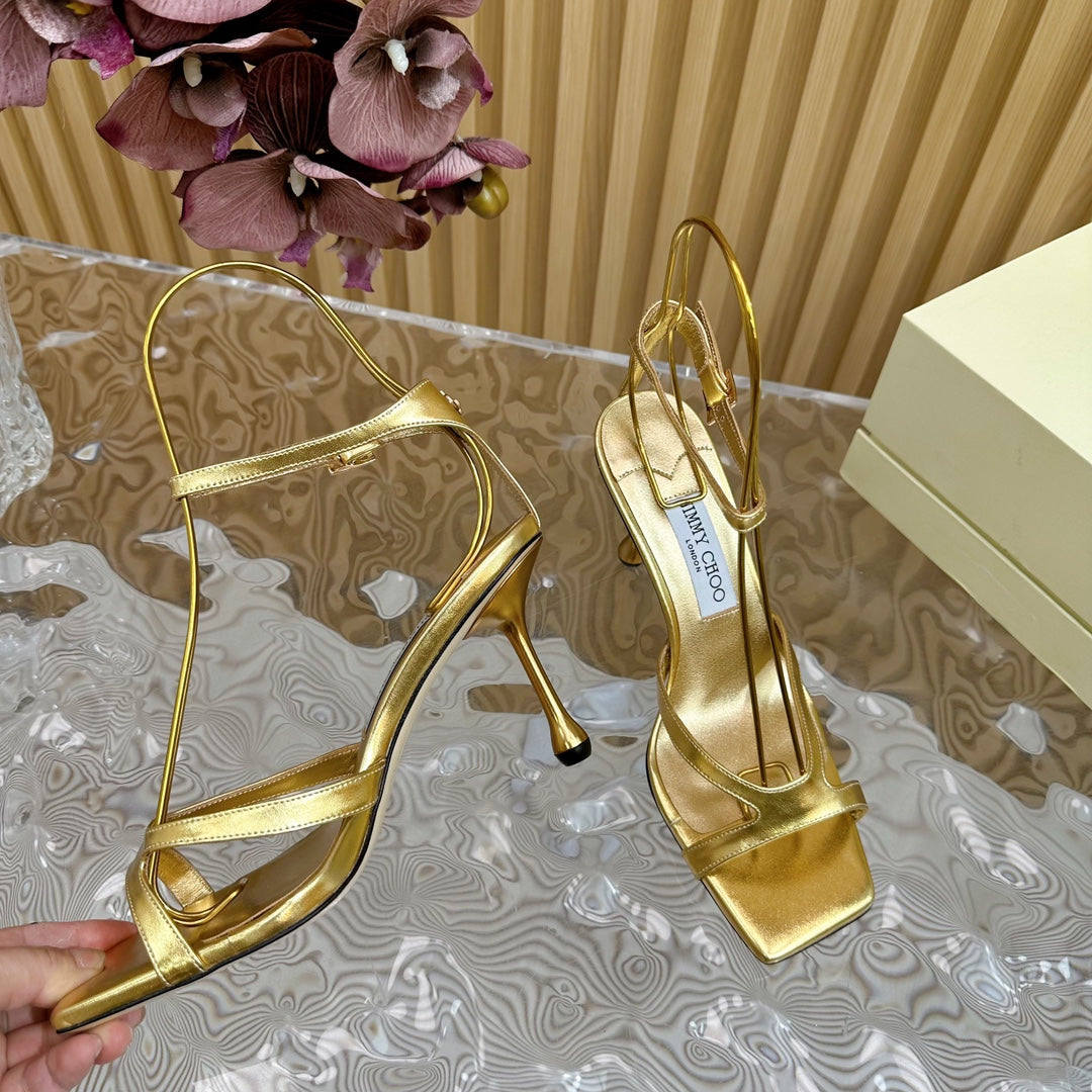 Jimmy Azia 95 In Light Beige Pink Glossy Cowhide Sandals 587703