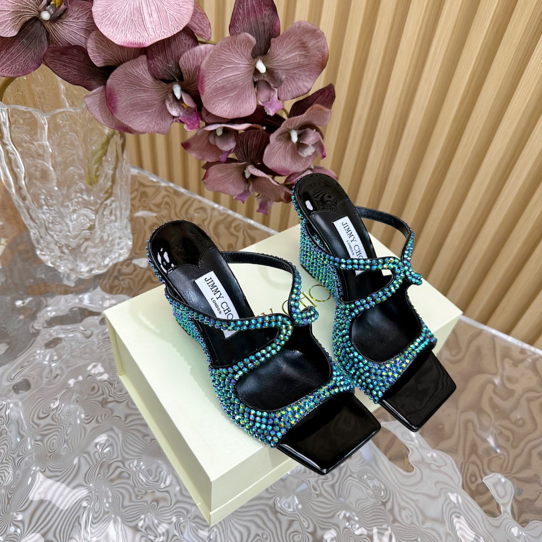 Jimmy Azia 95 In Black Glossy Cowhide Sandals 587707