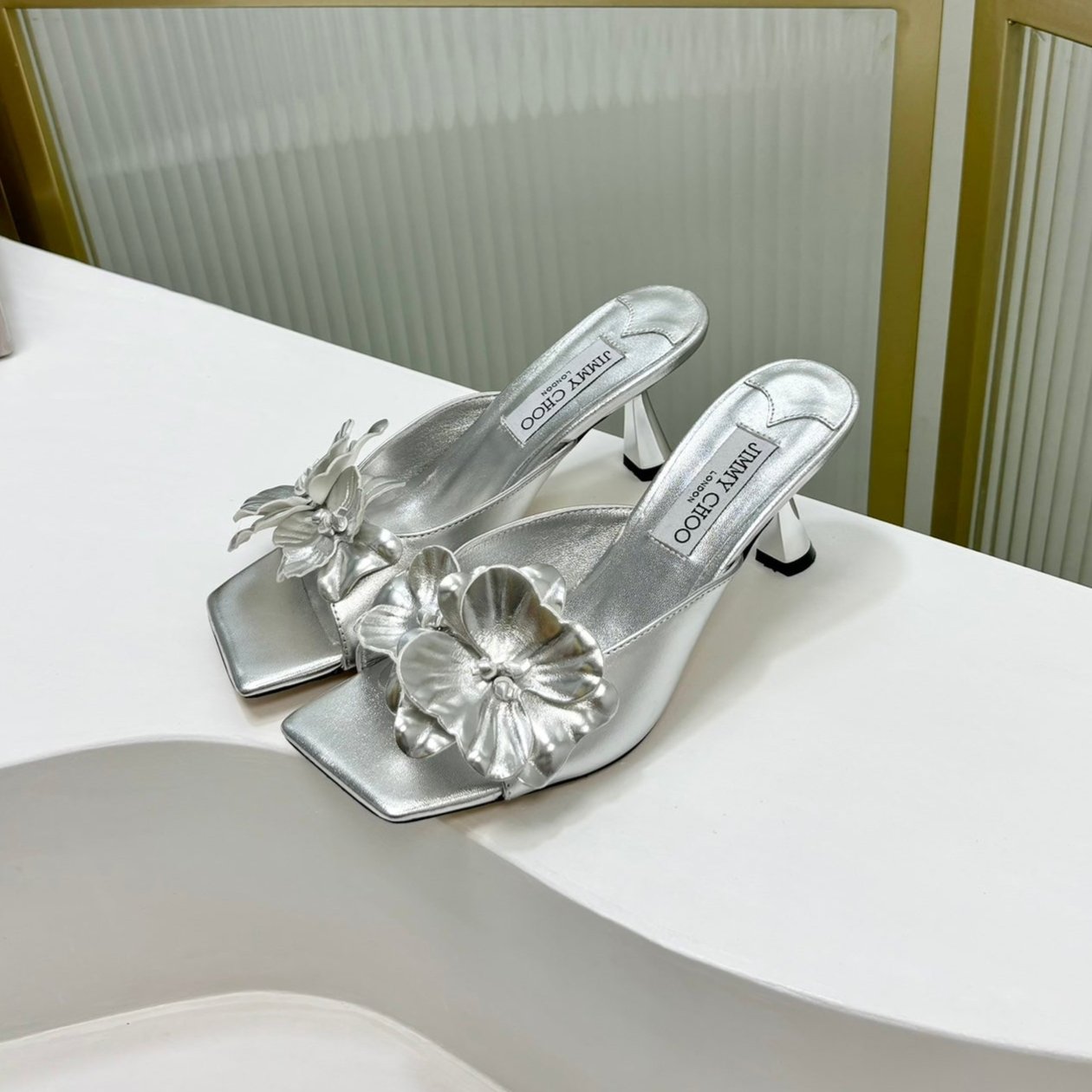 Jimmy Skye 70mm In Silver Cowhide Mules 586565