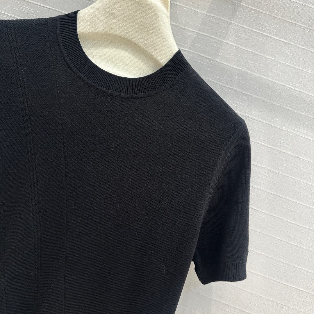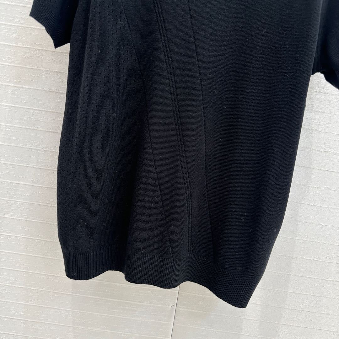 Hm 25 Hollow Knit Short-Sleeve Top Black Tencel Cotton