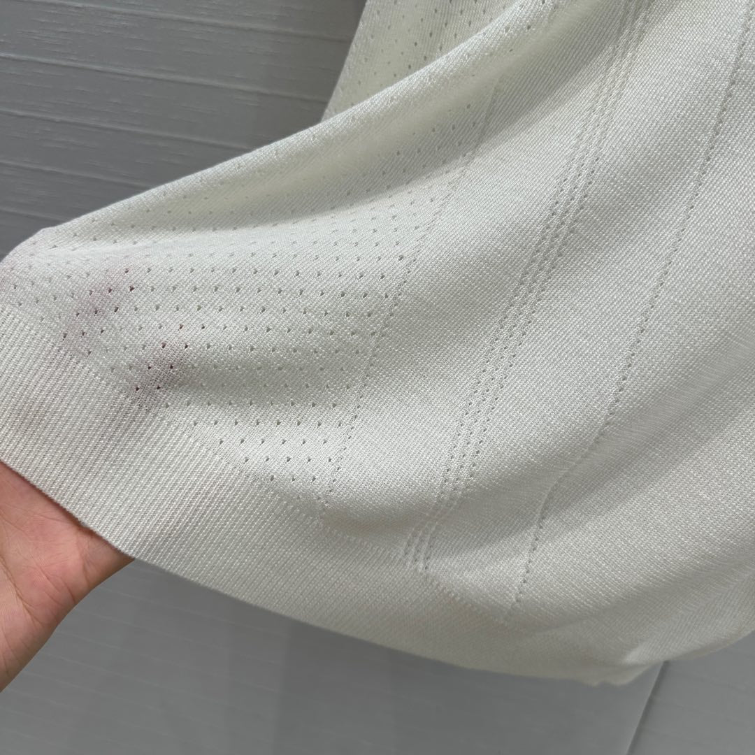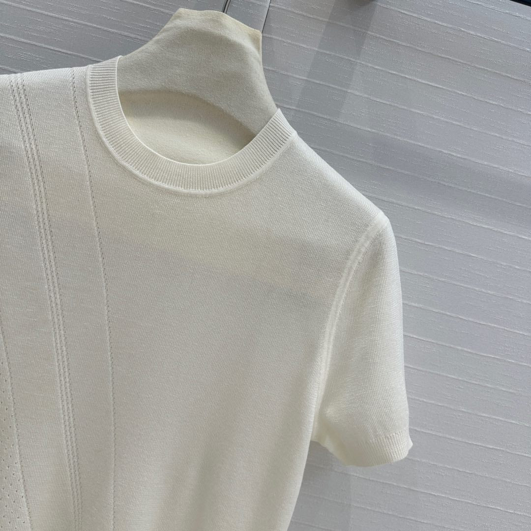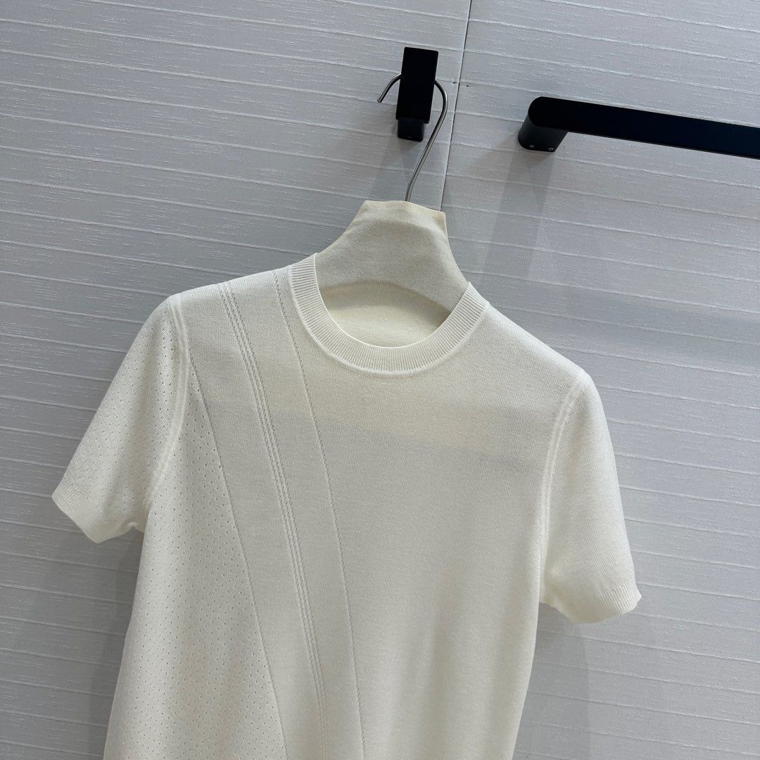 Hm 25 Hollow Knit Short-Sleeve Top White Tencel Cotton