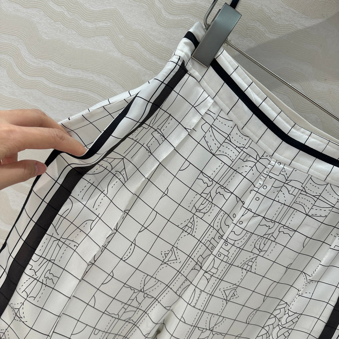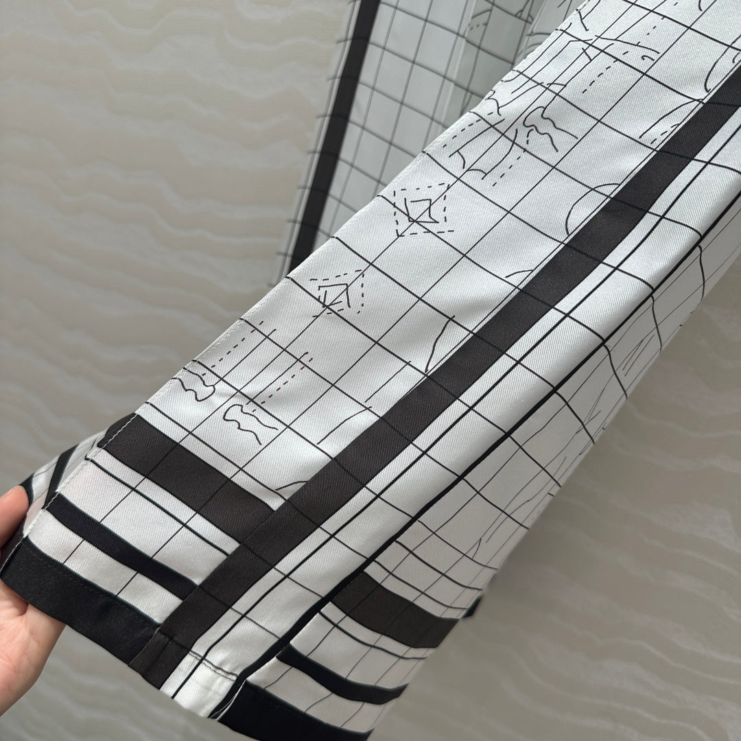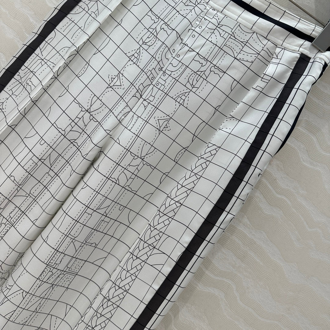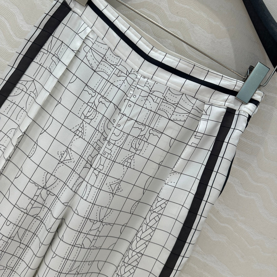 Hm 25 Coaching Deja Vu Wide-leg Straight Pants White Black Silk