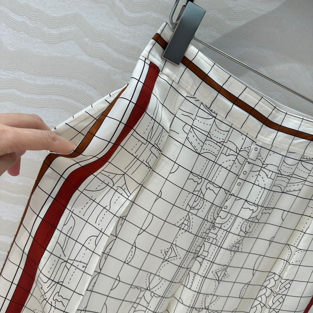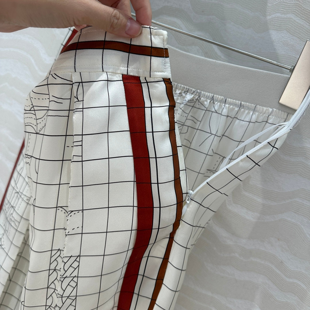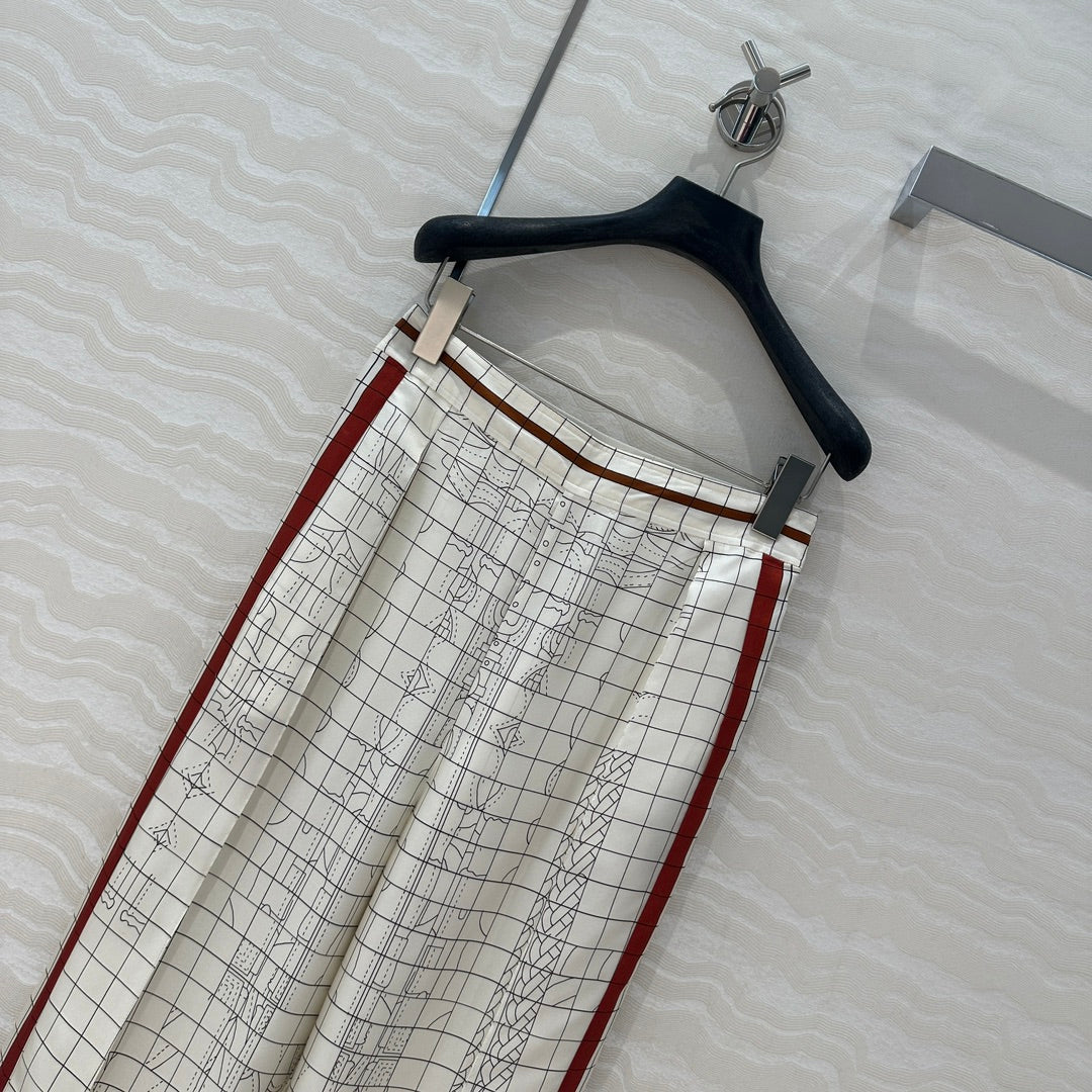Hm 25 Coaching Deja Vu Wide-leg Straight Pants White Red Silk