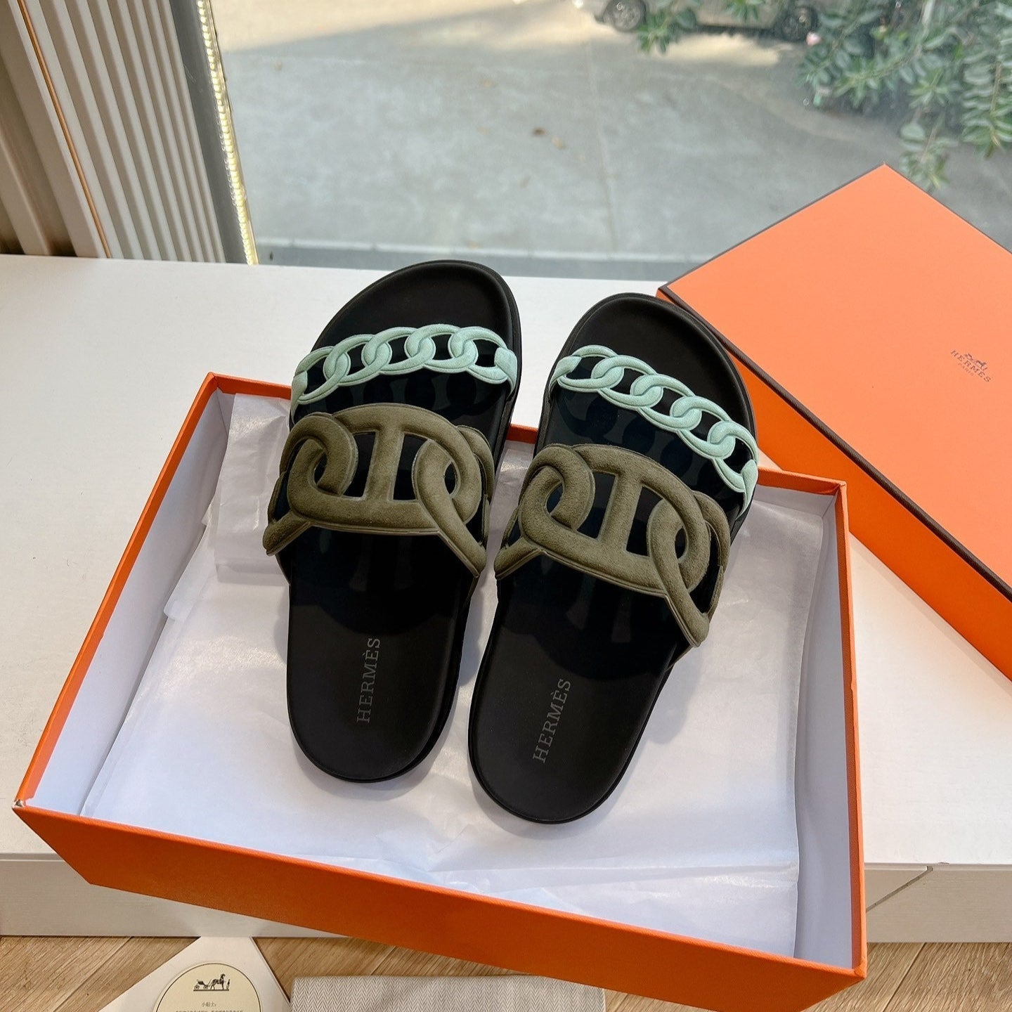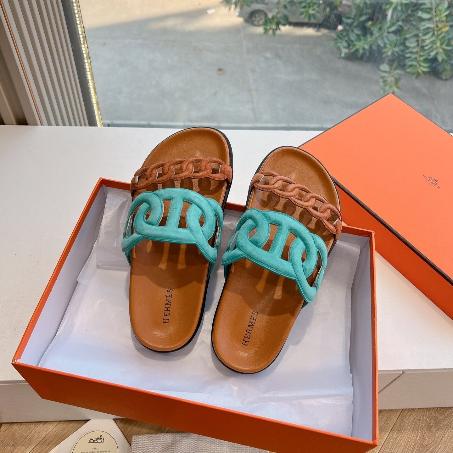 HM 25 Extra Sandal Khaki Tiffany Blue Calfskin