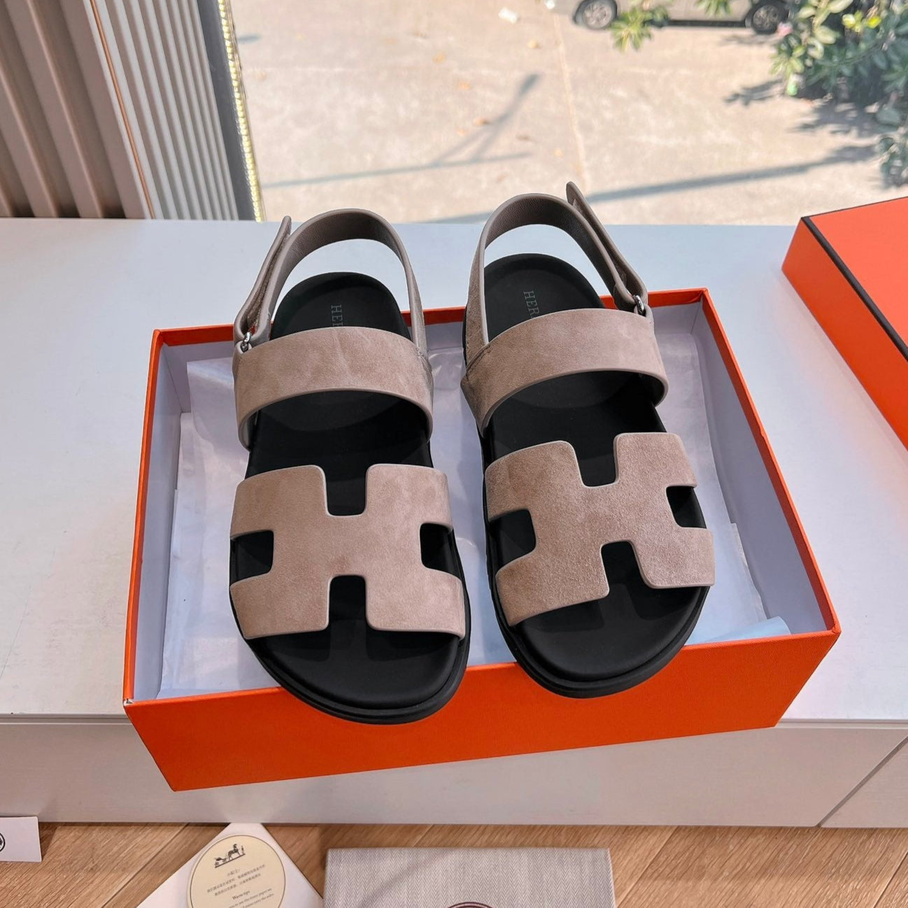 HM 25 Genius Sandal Beige Suede Black Calfskin