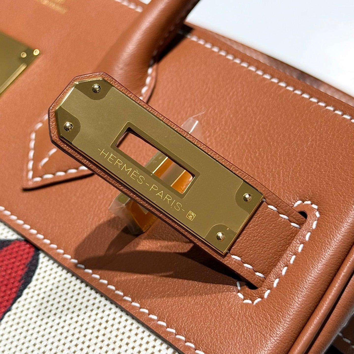 HM Birkin 30cm Gold Swift Leather Brown Canvas Gold Hardware
