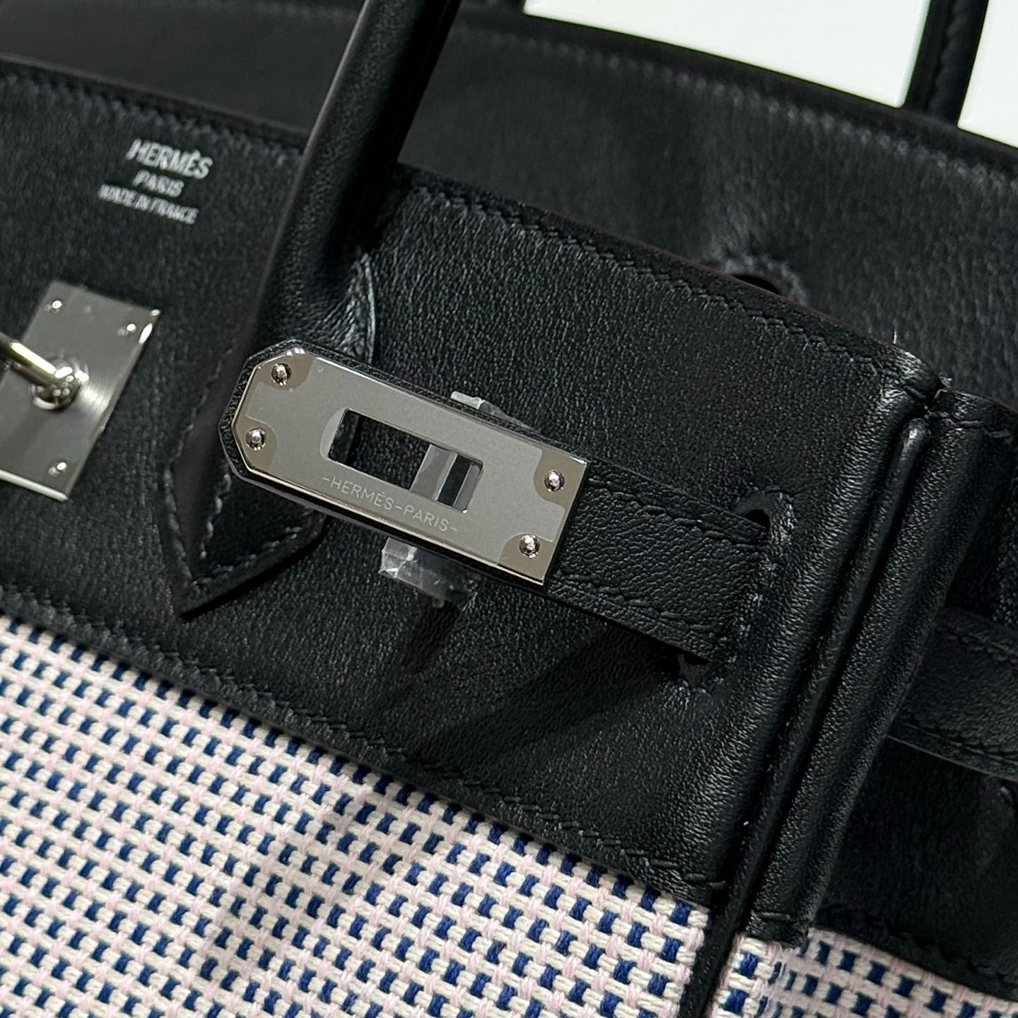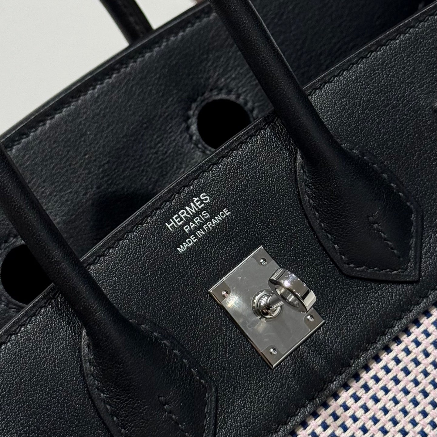 HM Birkin 25cm Black Swift Grey Canvas Silver Hardware