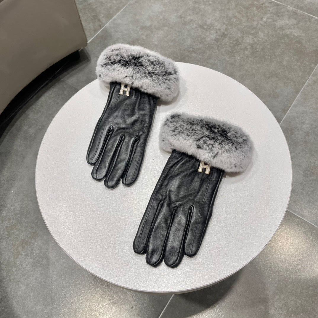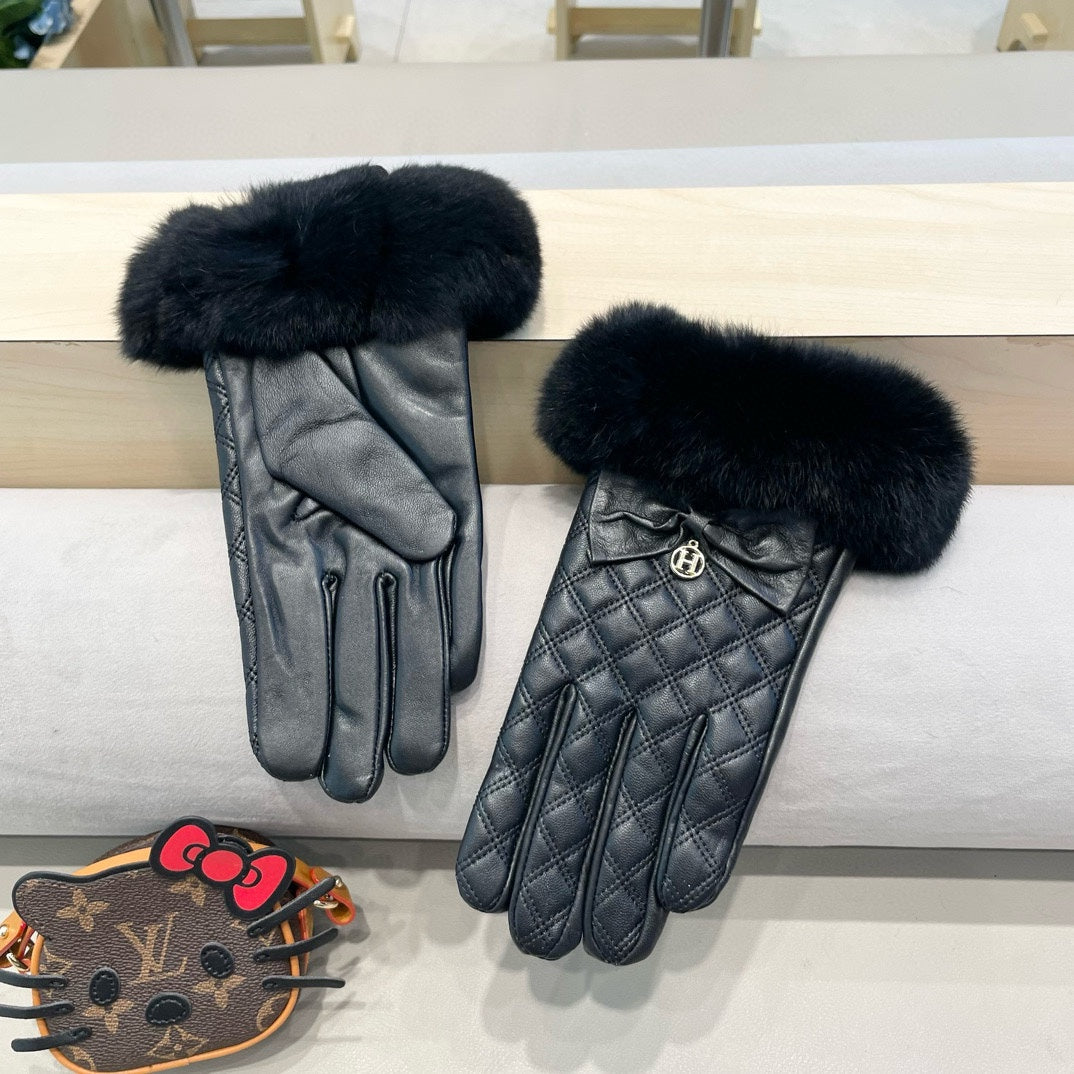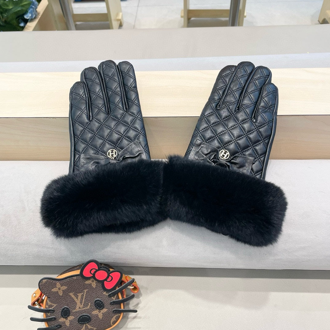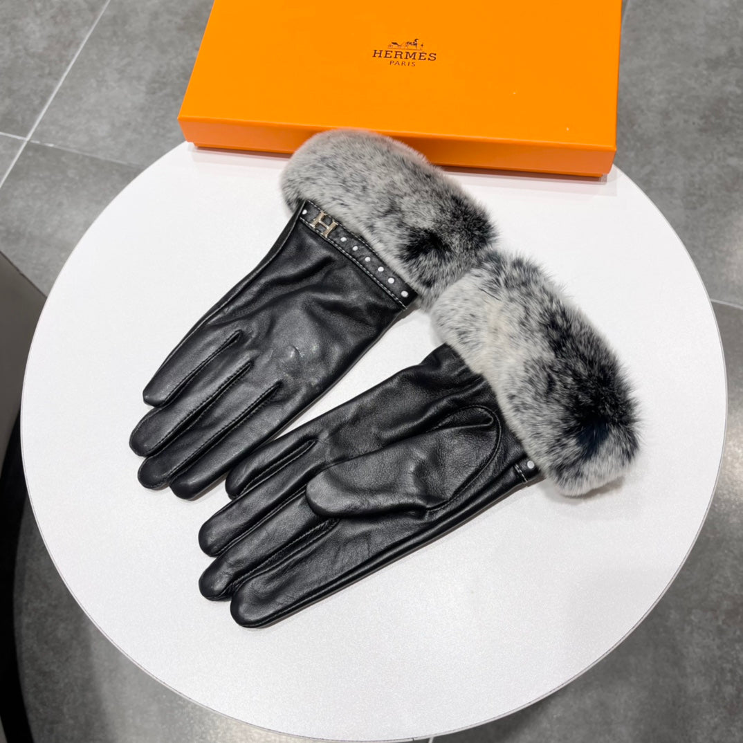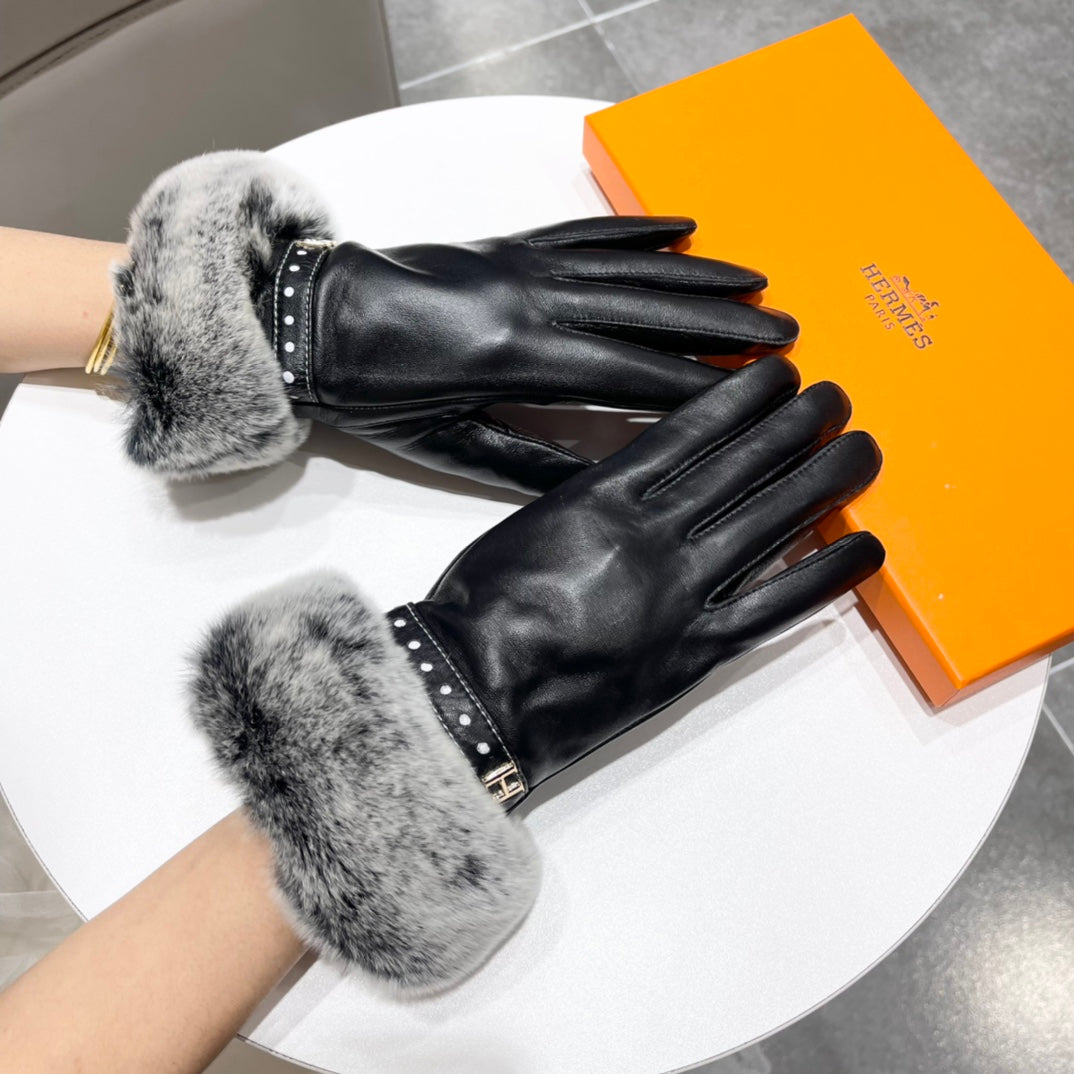 HM Glove In Black Lambskin With Rabbit Fur Lining 113709