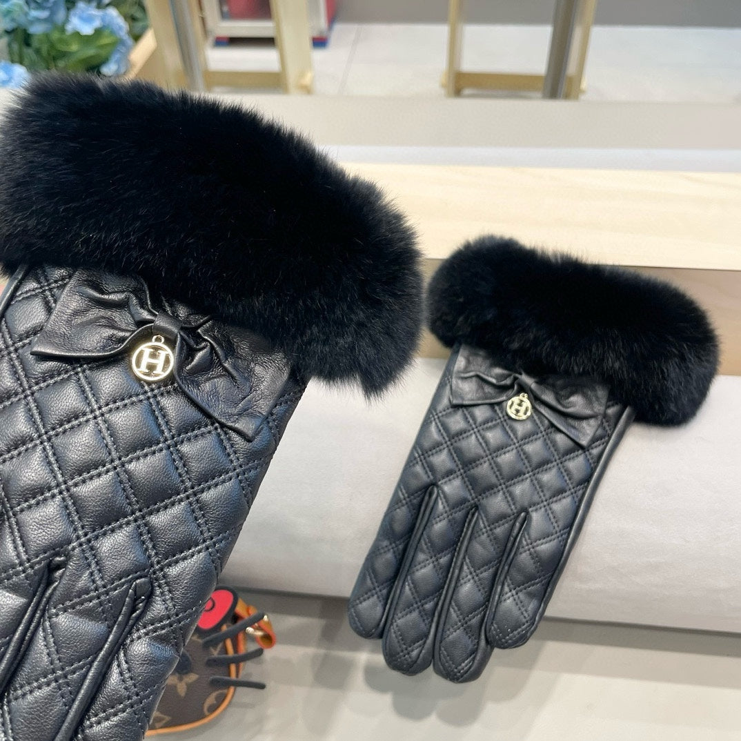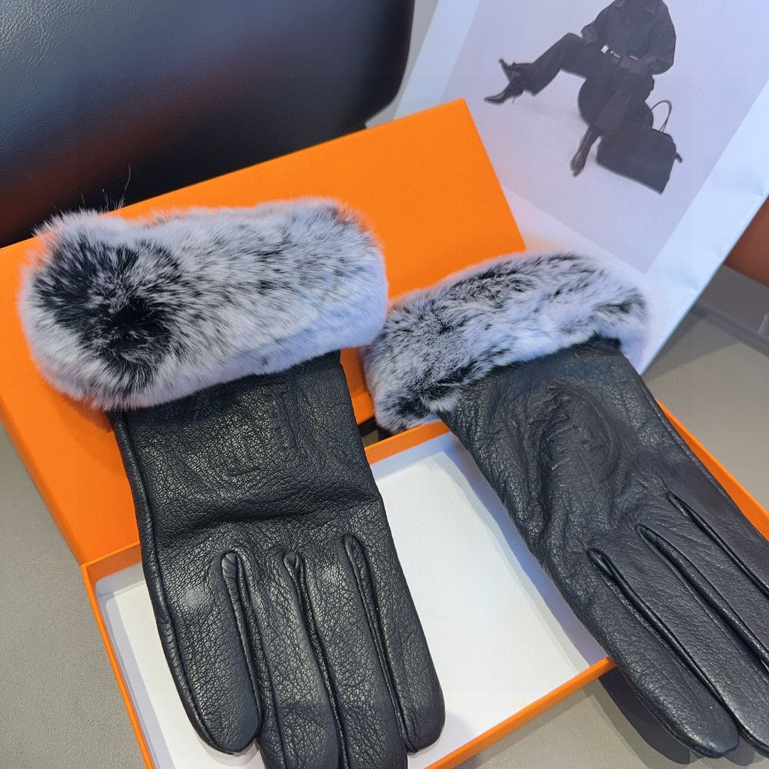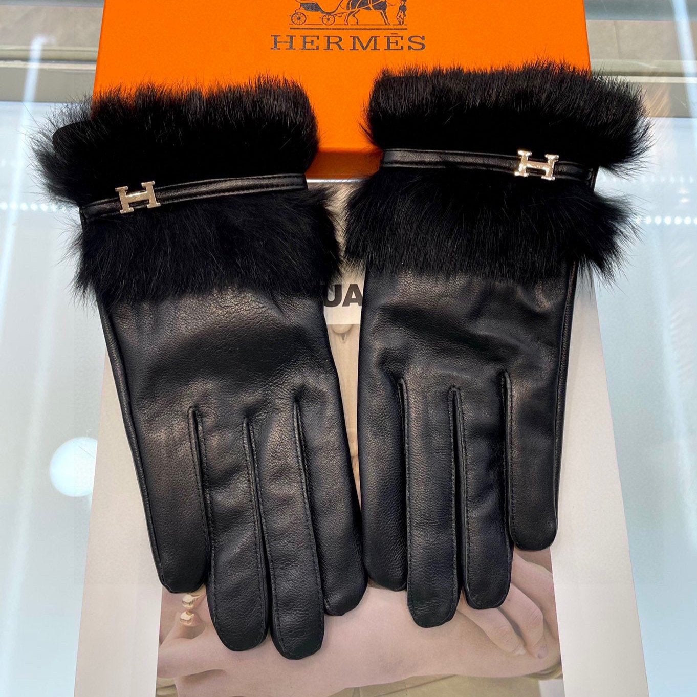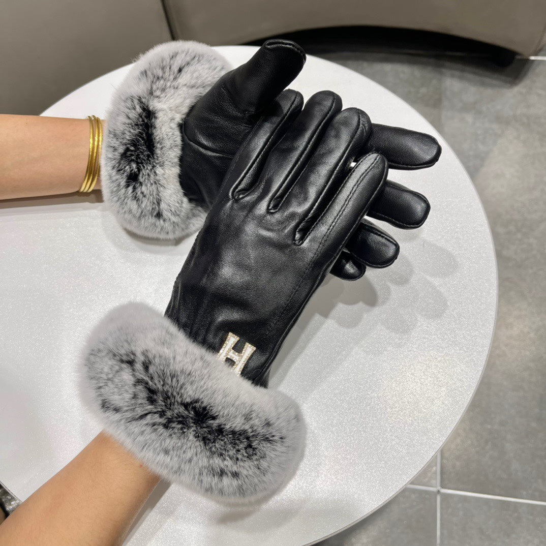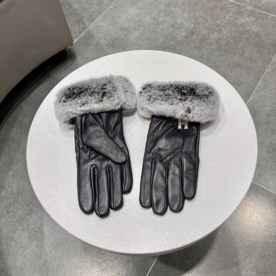 HM Glove In Black Lambskin With Rabbit Fur Lining 113709