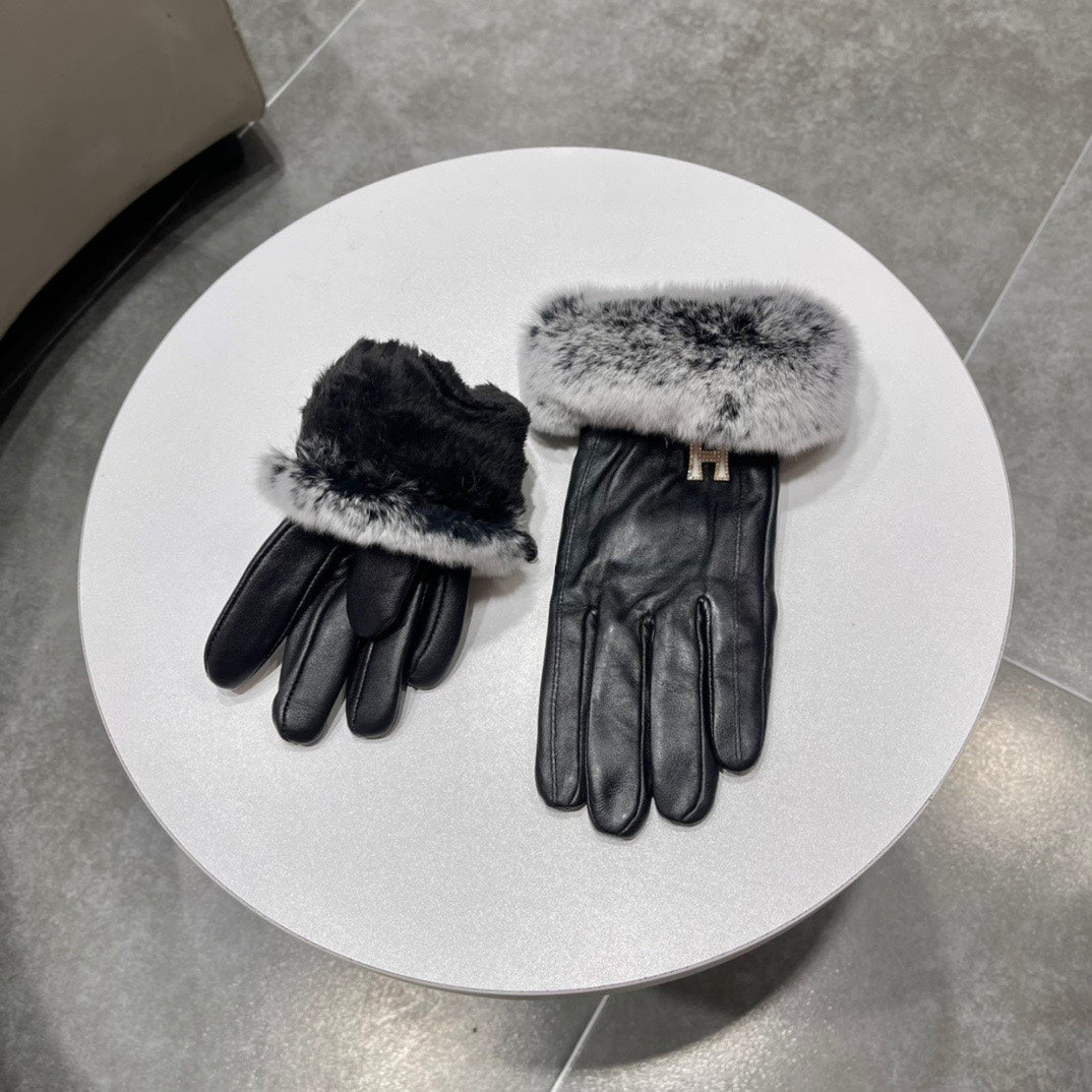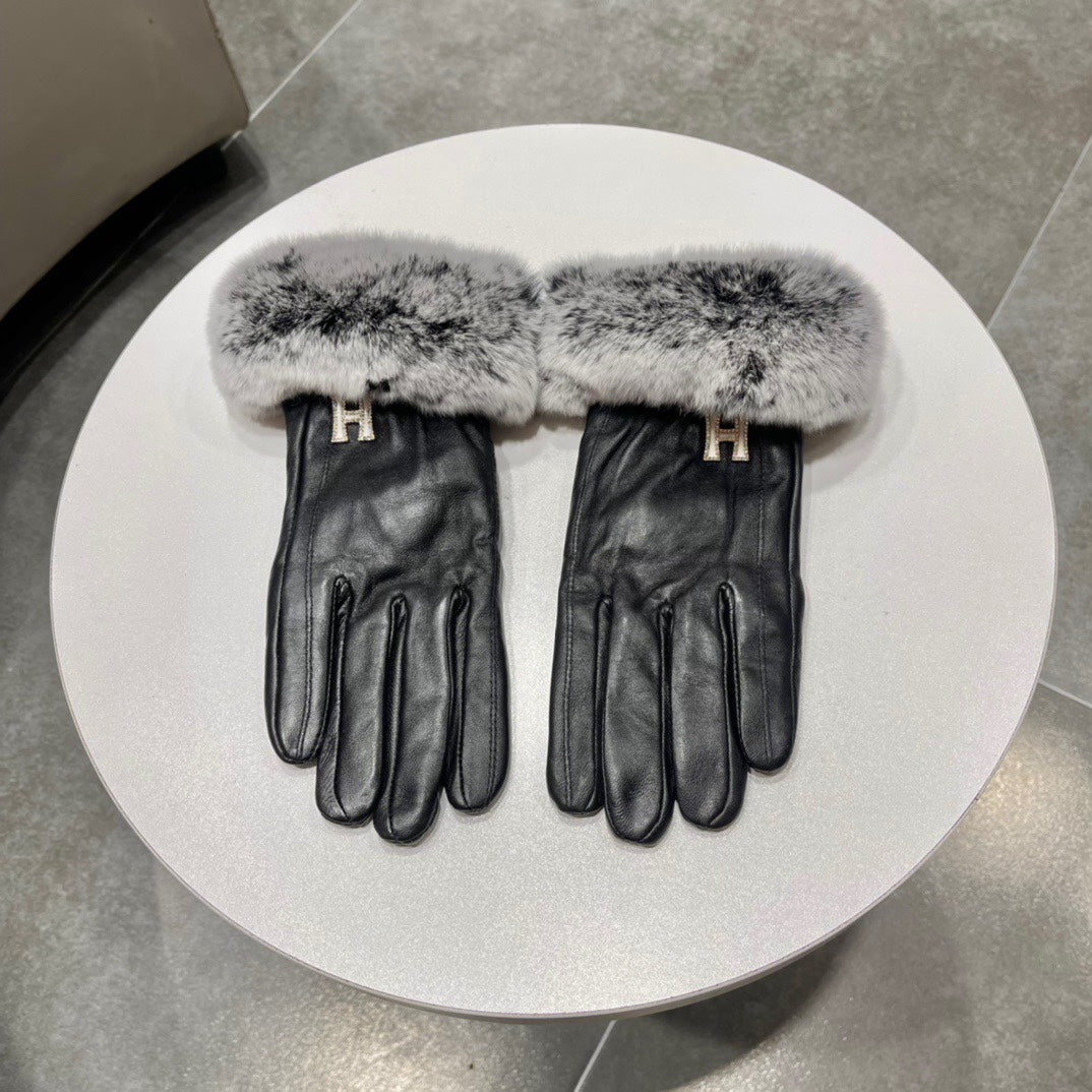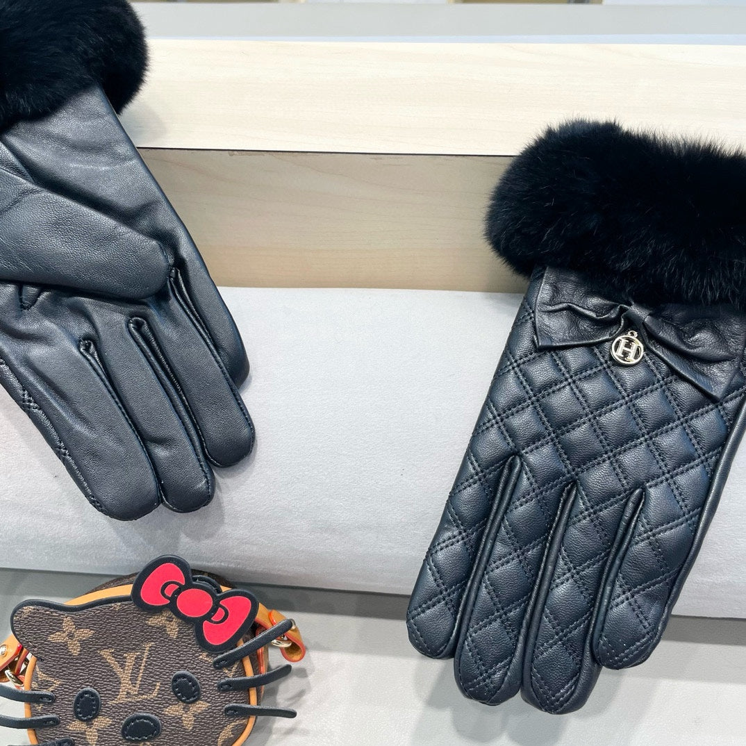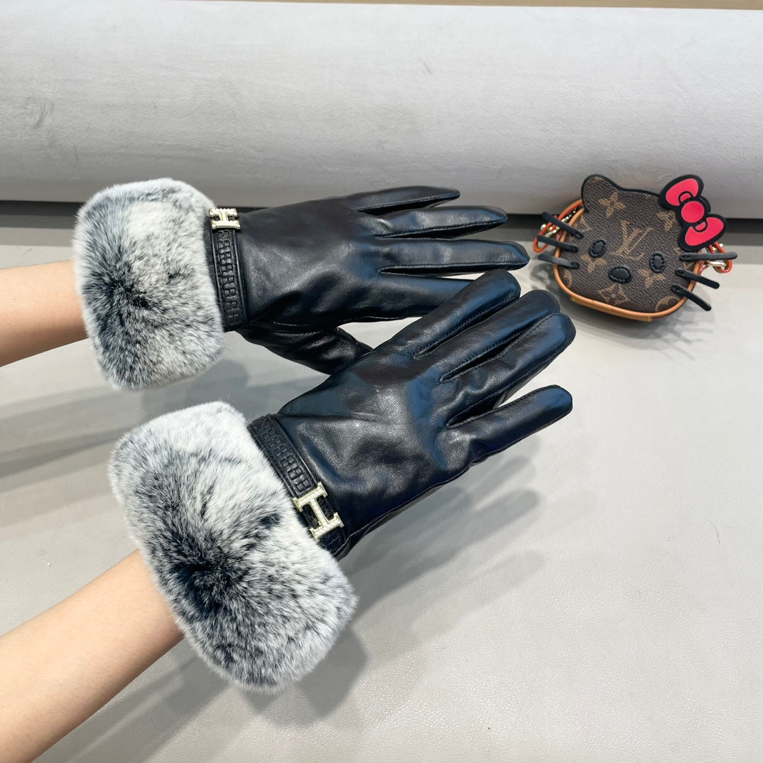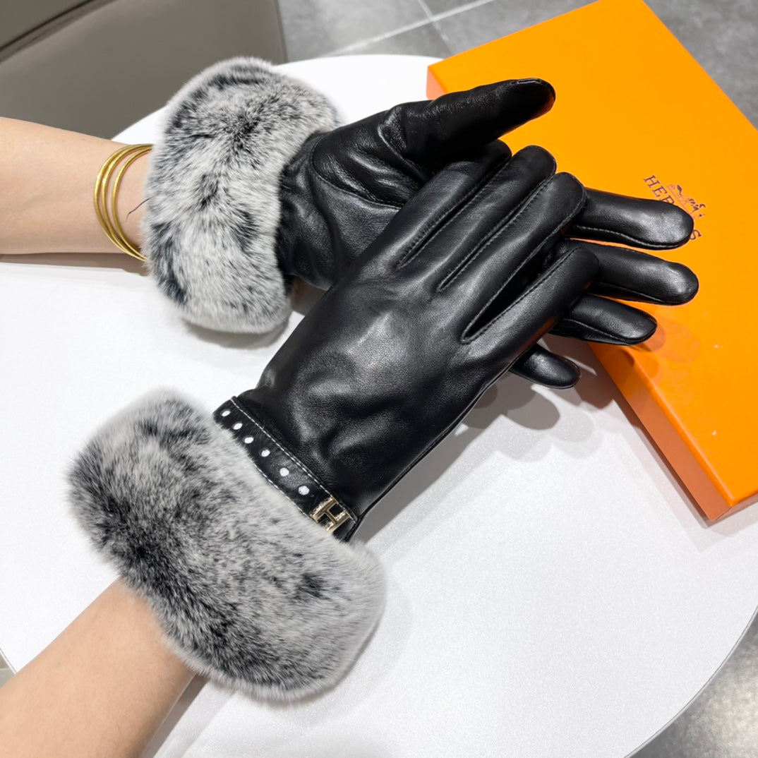 HM Glove In Black Lambskin With Rabbit Fur Lining 113709