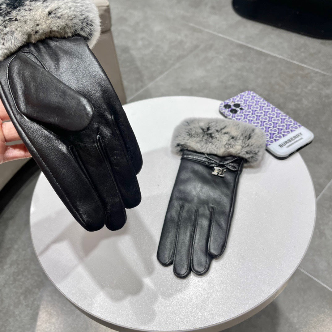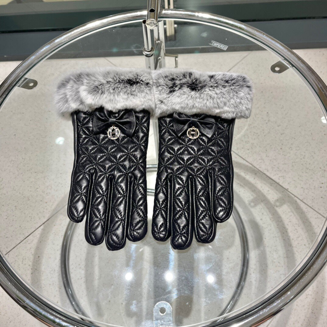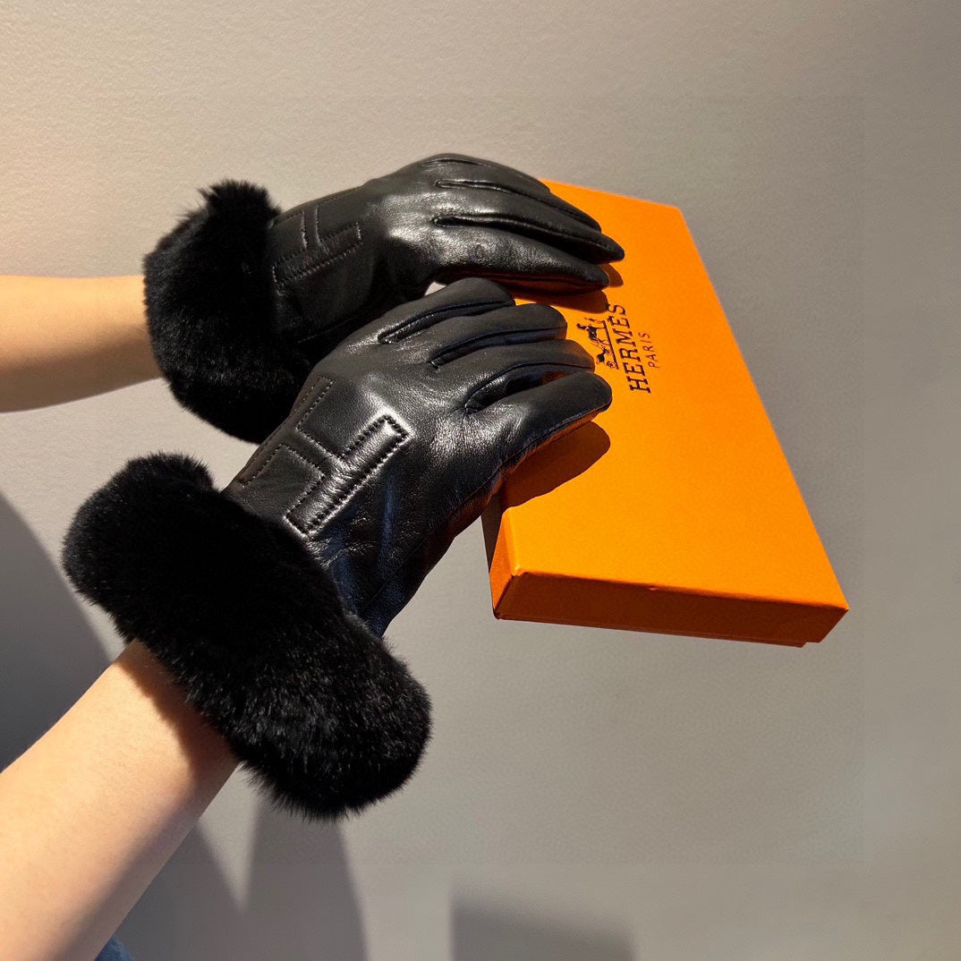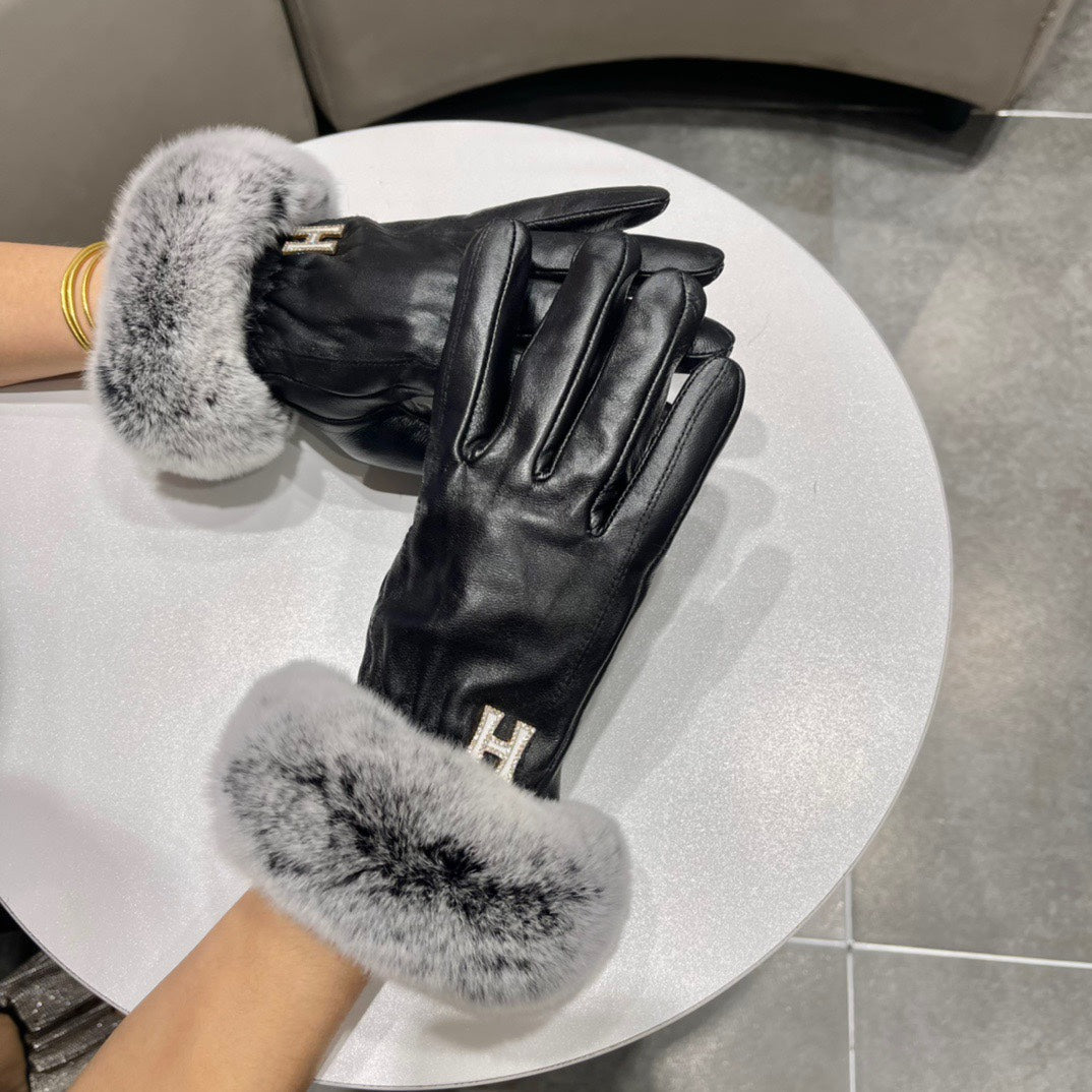 HM Glove In Black Lambskin With Rabbit Fur Lining 113709