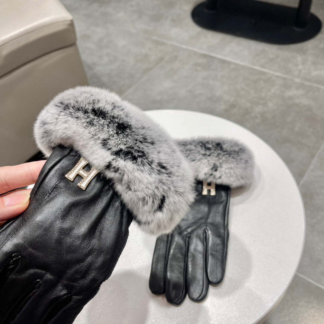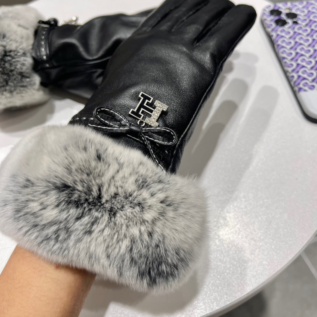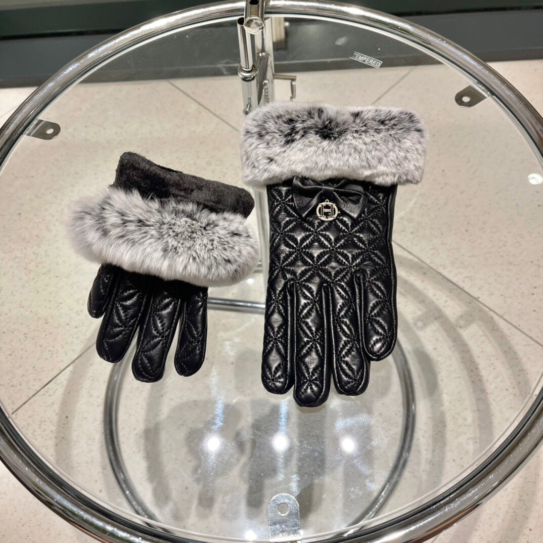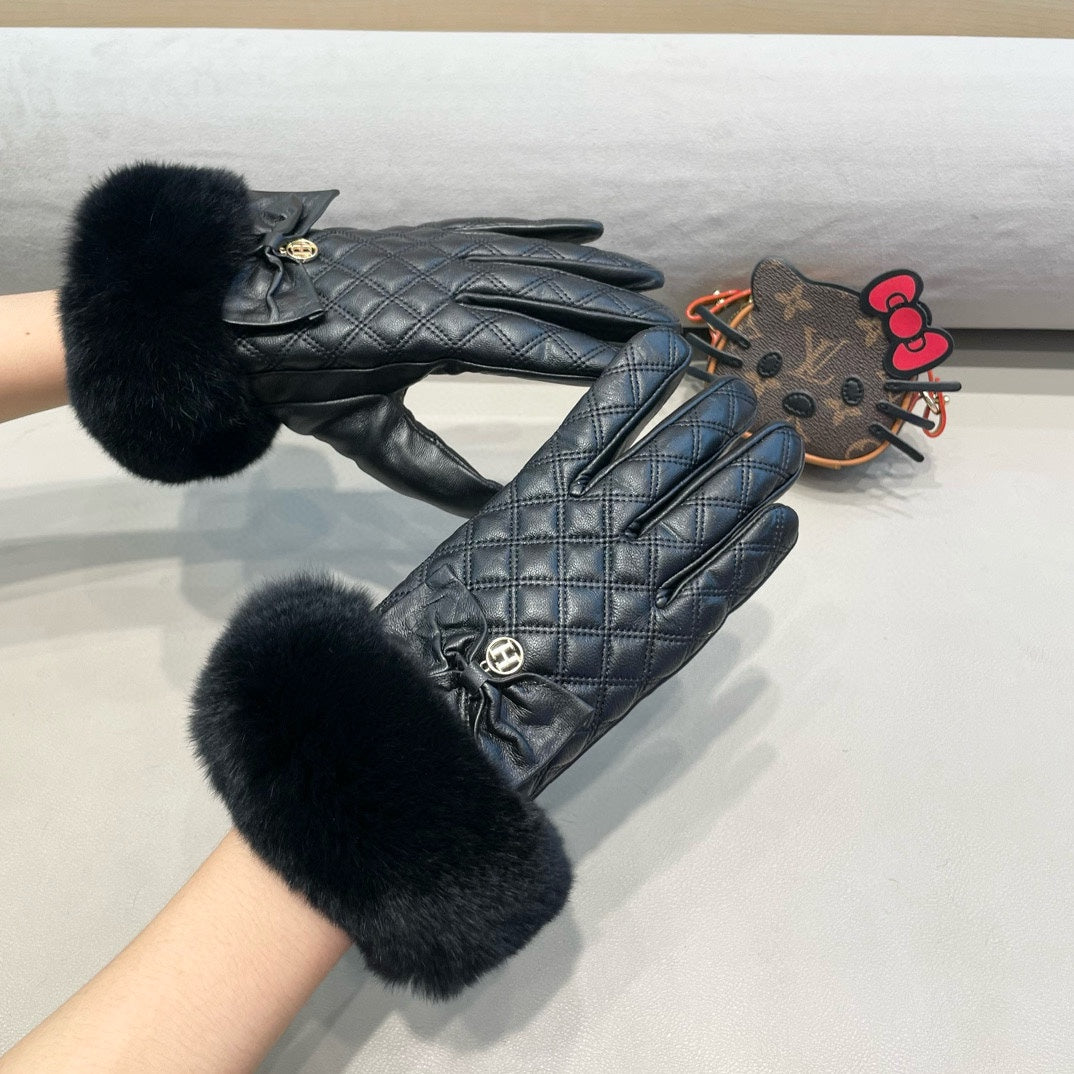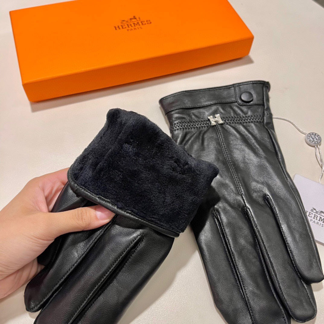 HM Glove In Black Lambskin With Rabbit Fur Lining 113709