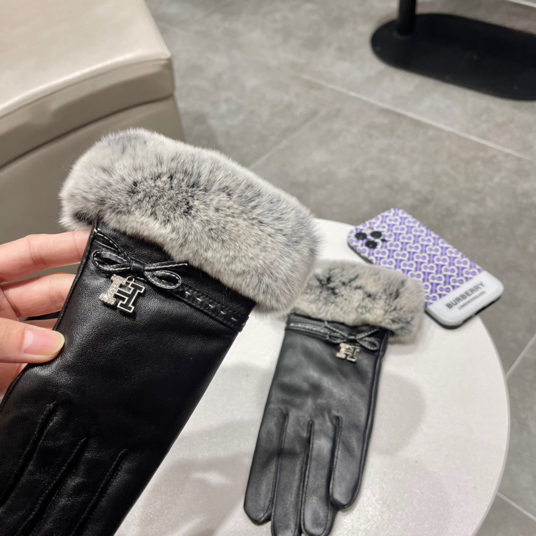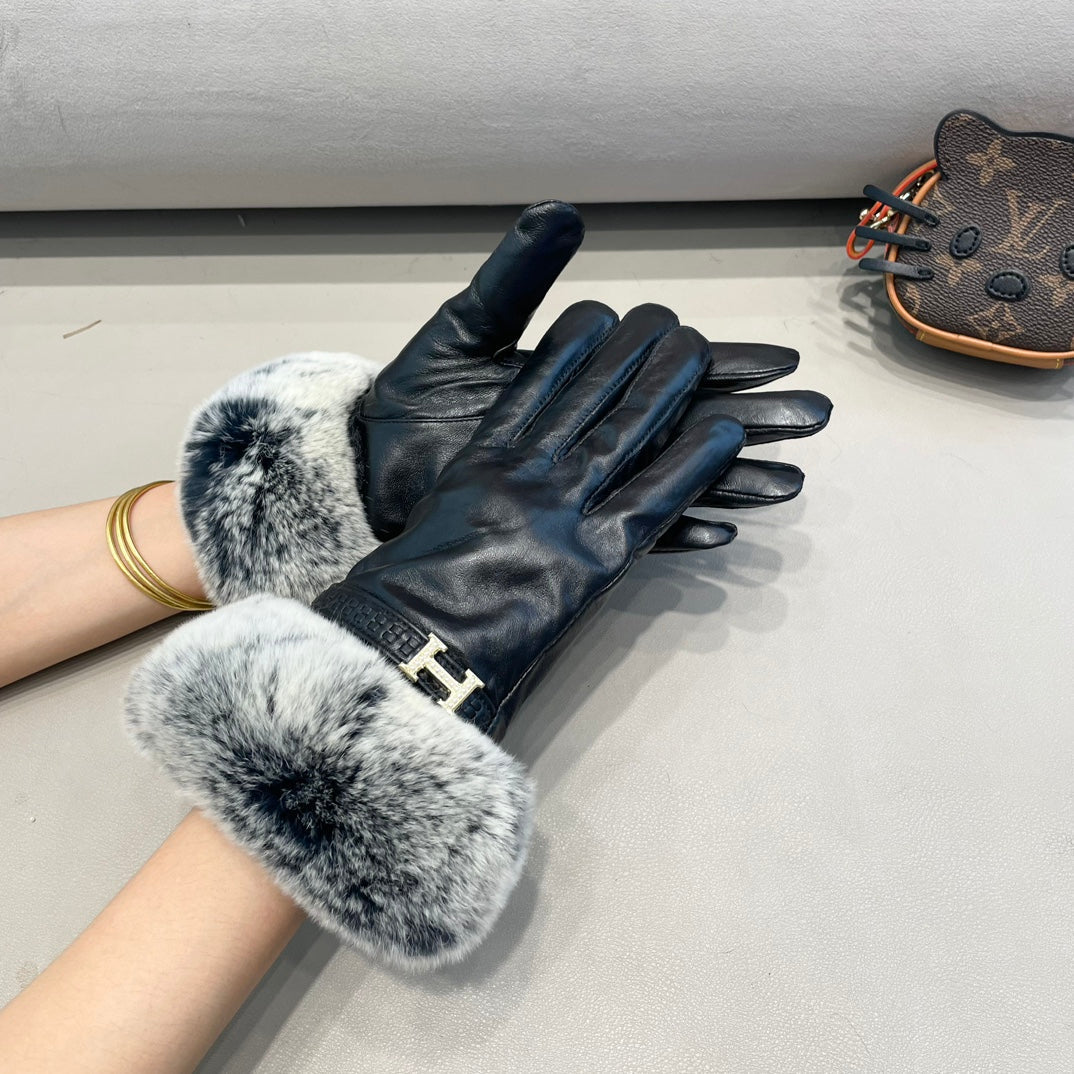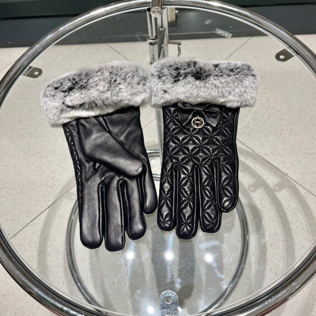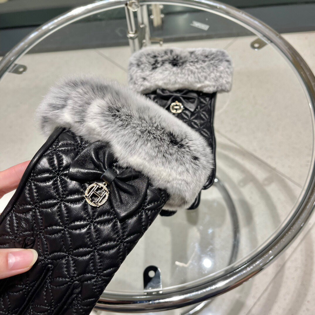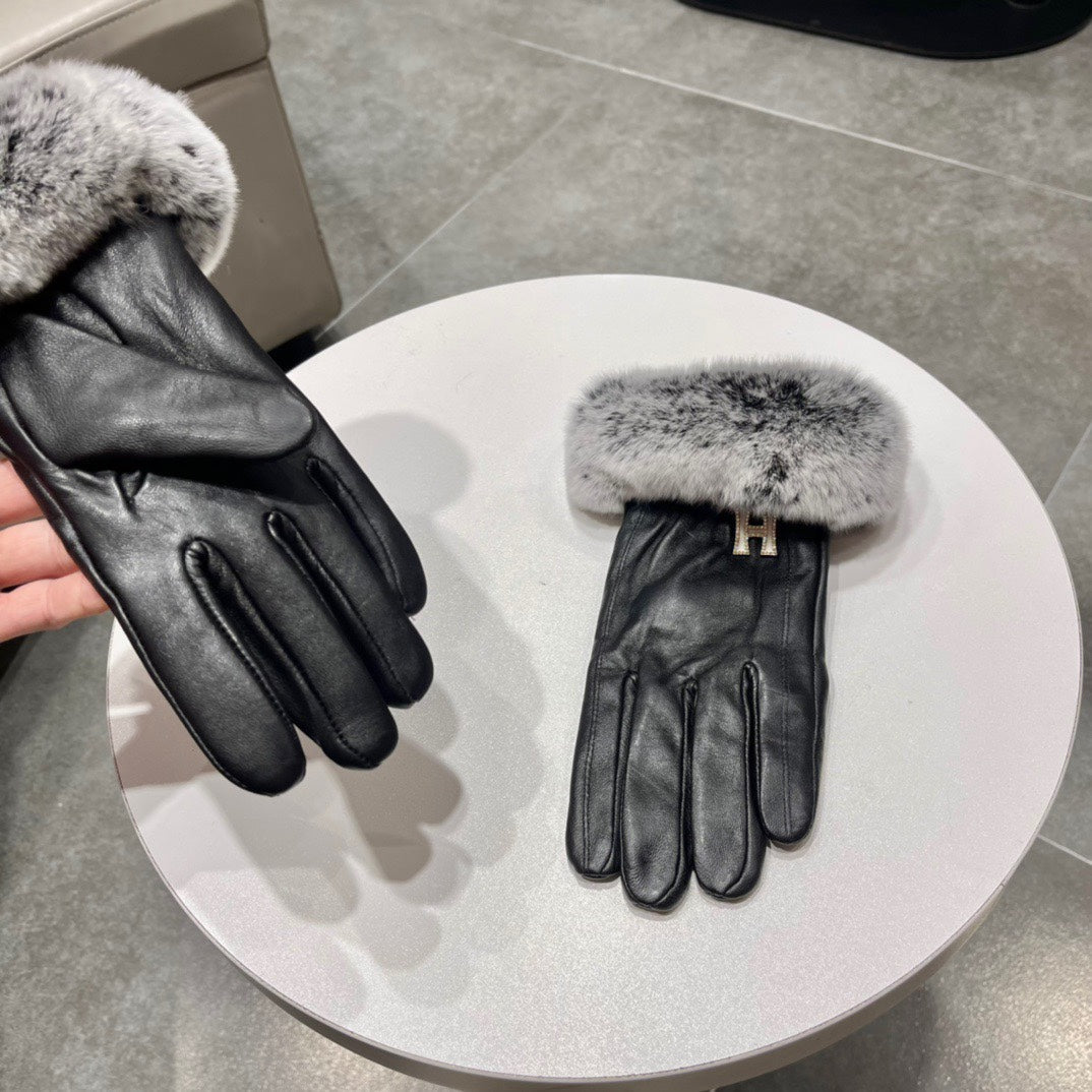 HM Glove In Black Lambskin With Rabbit Fur Lining 113709