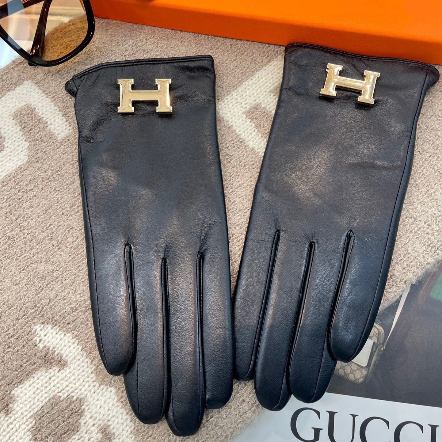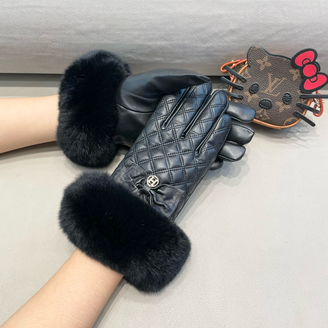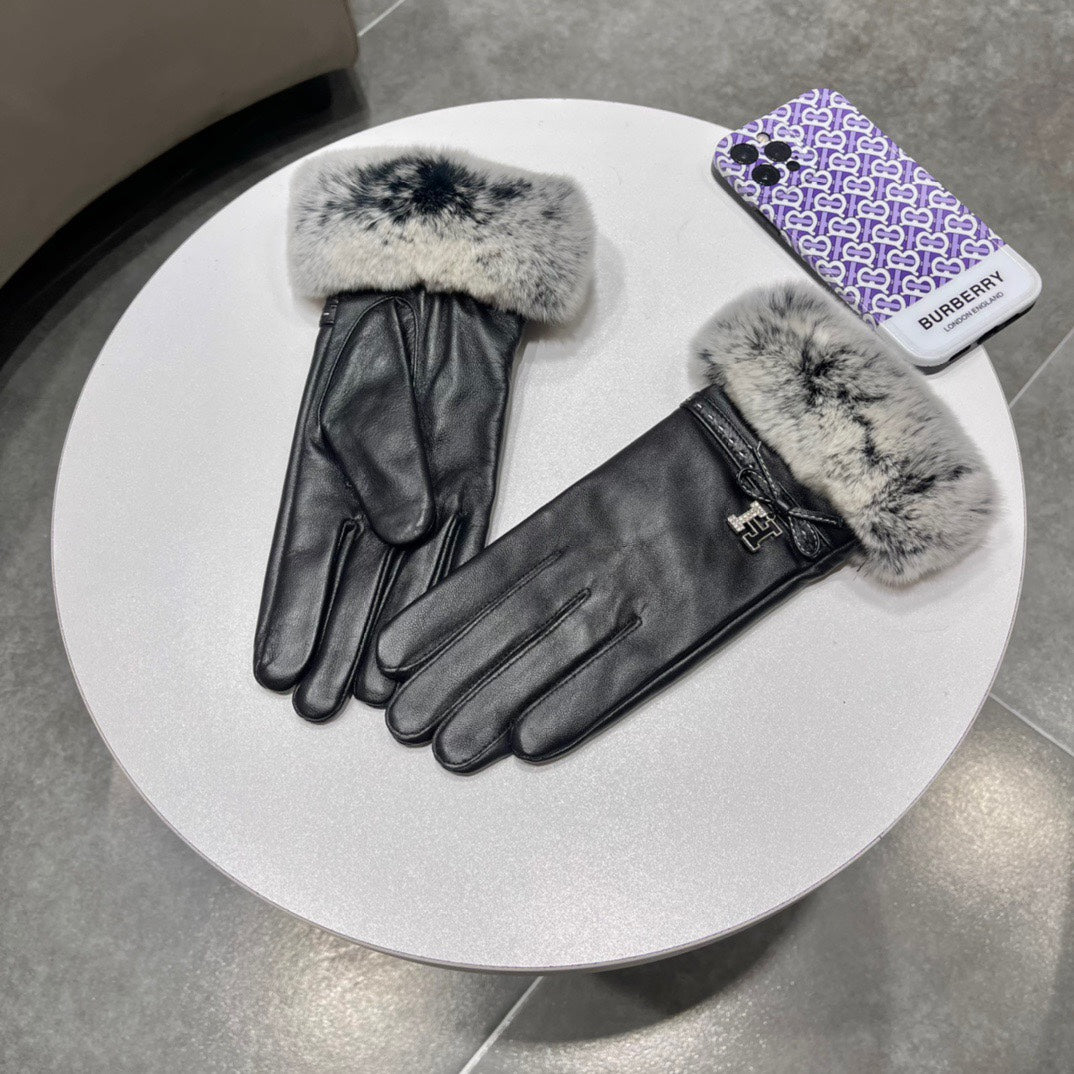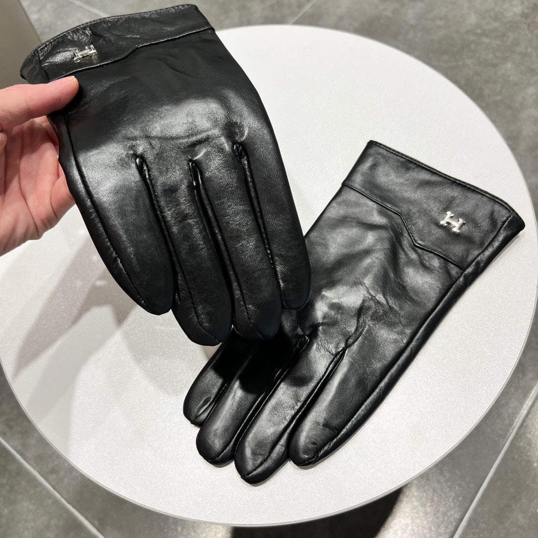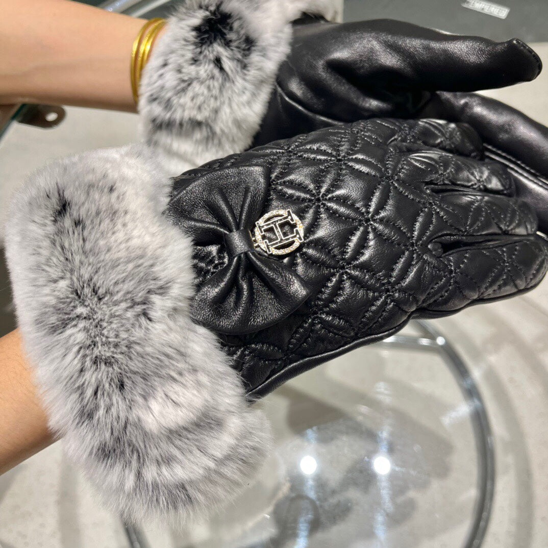 HM Glove In Black Lambskin With Rabbit Fur Lining 113709