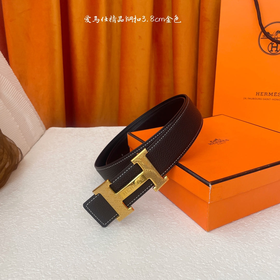 HM Gold Buckle H Belt 38mm Brown Calfskin 187183