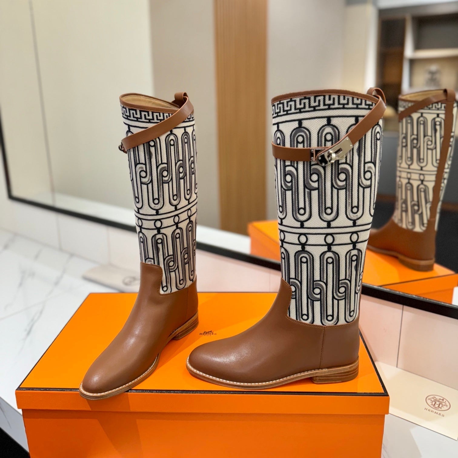HM Jumping Boot 20MM Brown Printed Pattern Cowhide 992356
