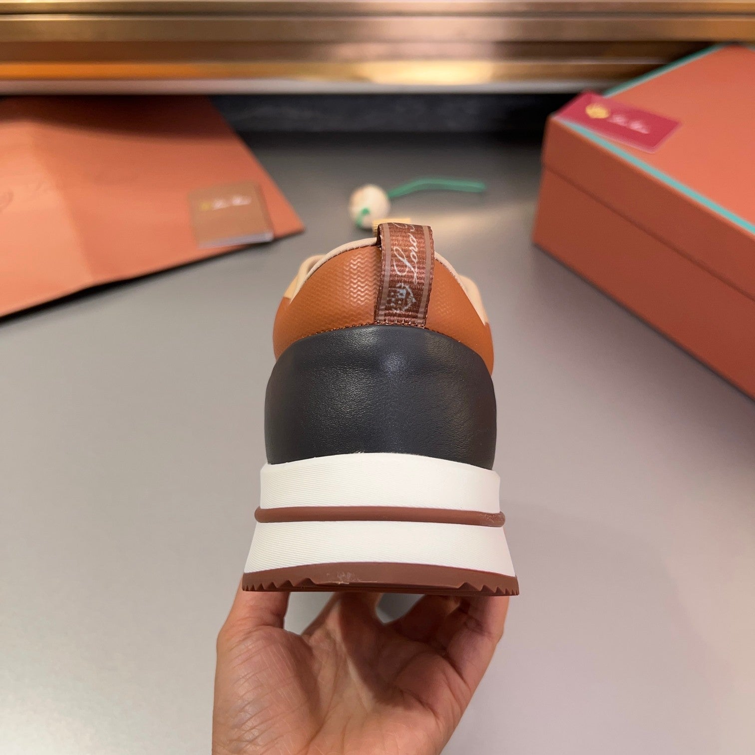 LP BRUNELLO SNEAKERS BROWN AND LIGHT GRAY MESH BREATHABLE
