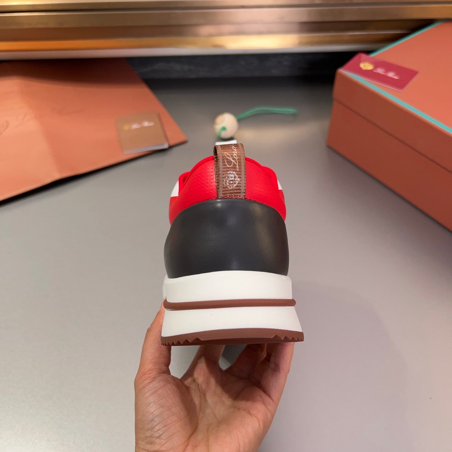 LP BRUNELLO SNEAKERS LIGHT GRAY AND RED MESH BREATHABLE