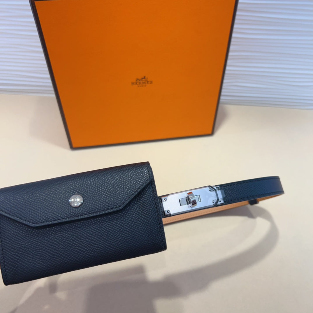 HM KELLY POCKET 18MM BELT BLACK LEATHER GOLD HARDWARE
