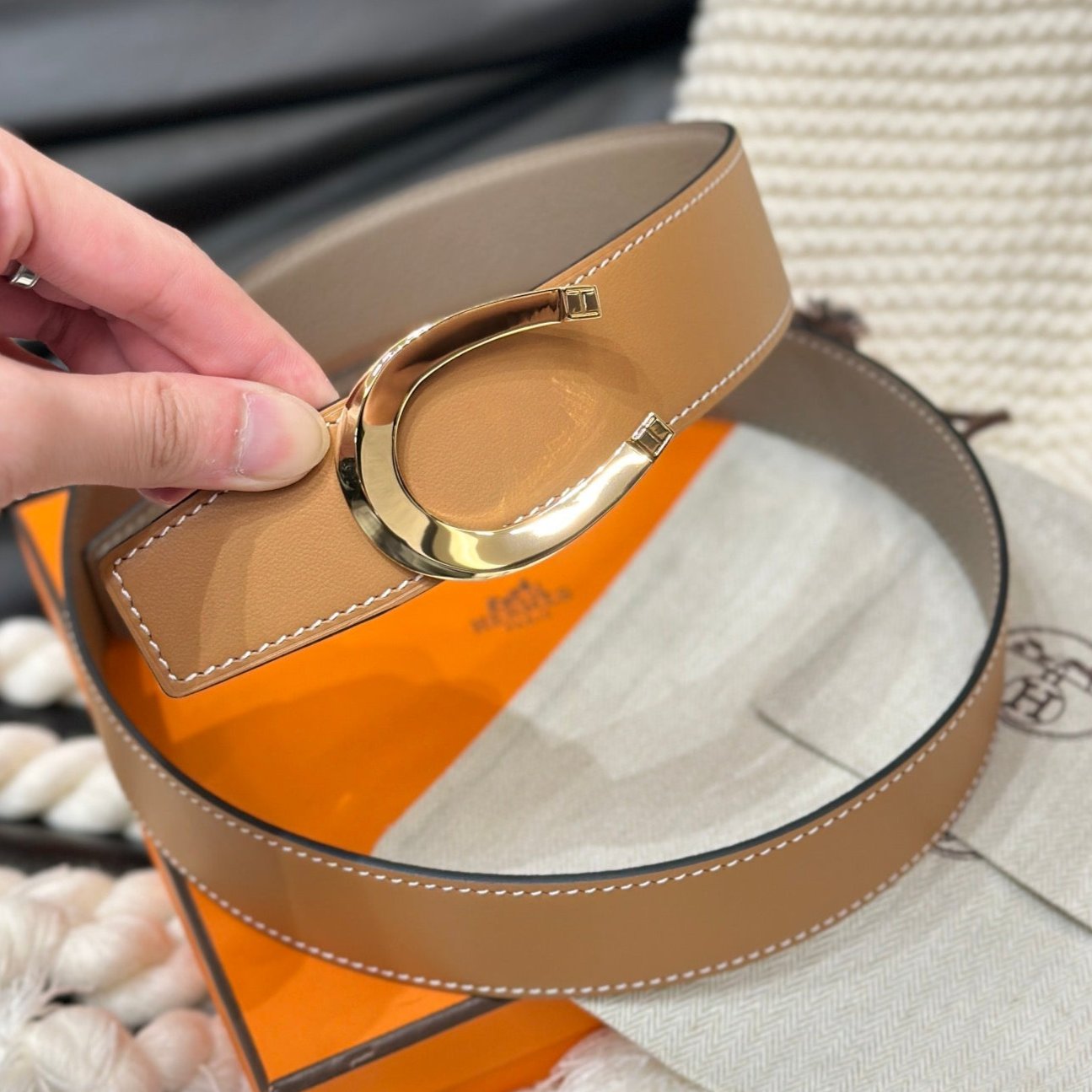 HM MAILLON H BELT BUCKLE & REVERSIBLE COFFEE BROWN LEATHER STRAP 13 MM GOLD HARDWARE