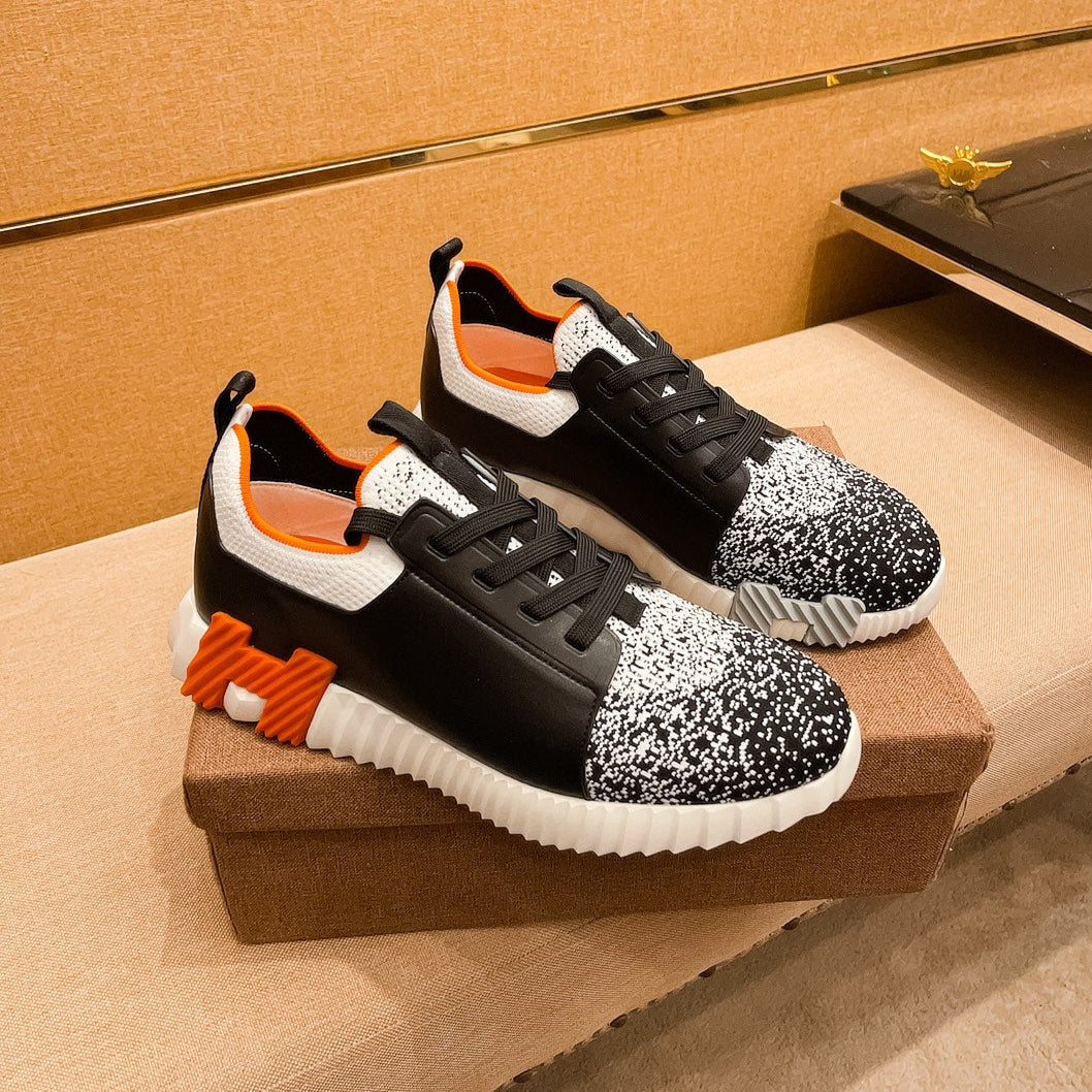 HM Men's Depart Slip-on Sneaker White Black Knit Cowhide 541299