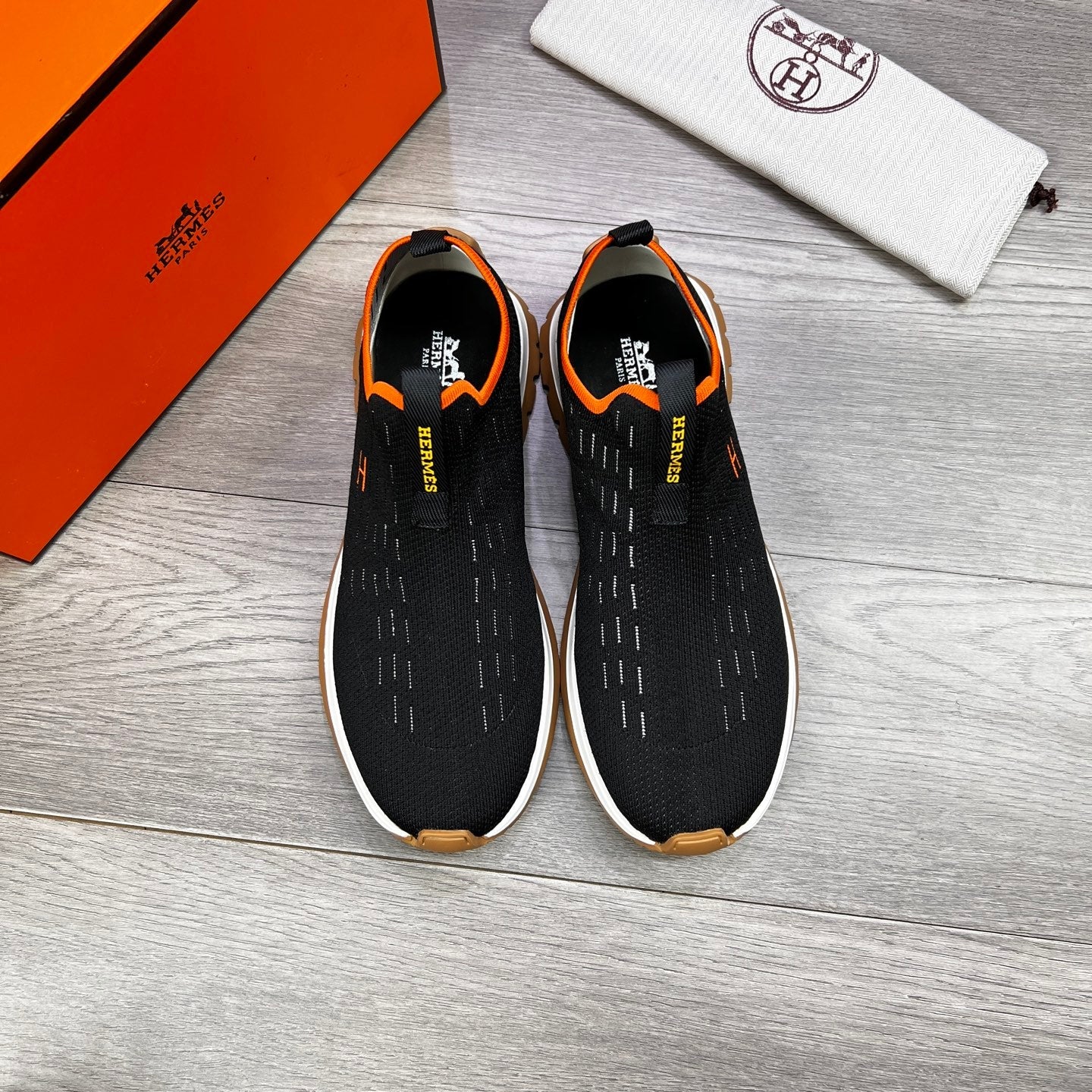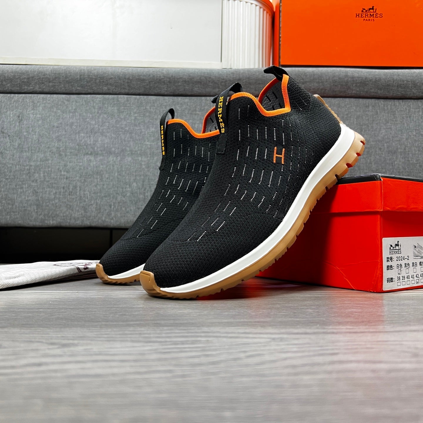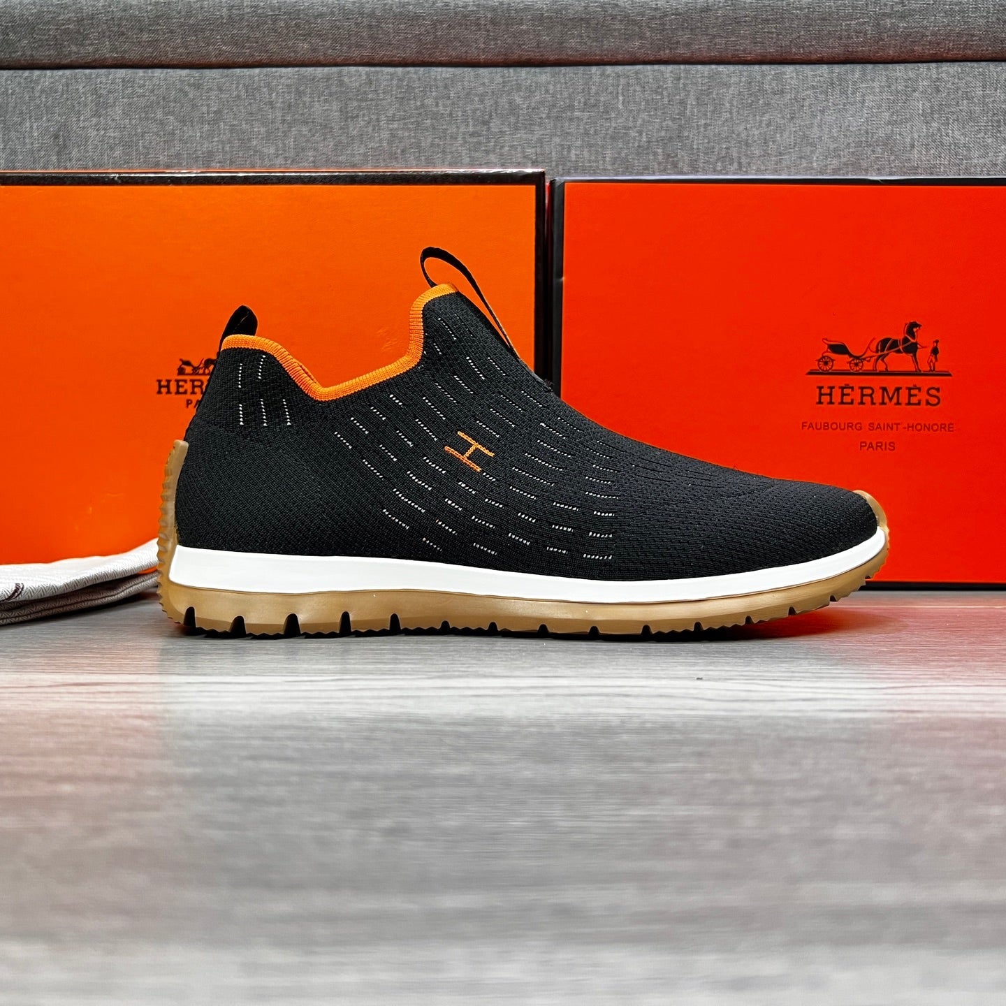 HM Men's Depart Slip-on Sneaker Black Knit Cowhide 709790
