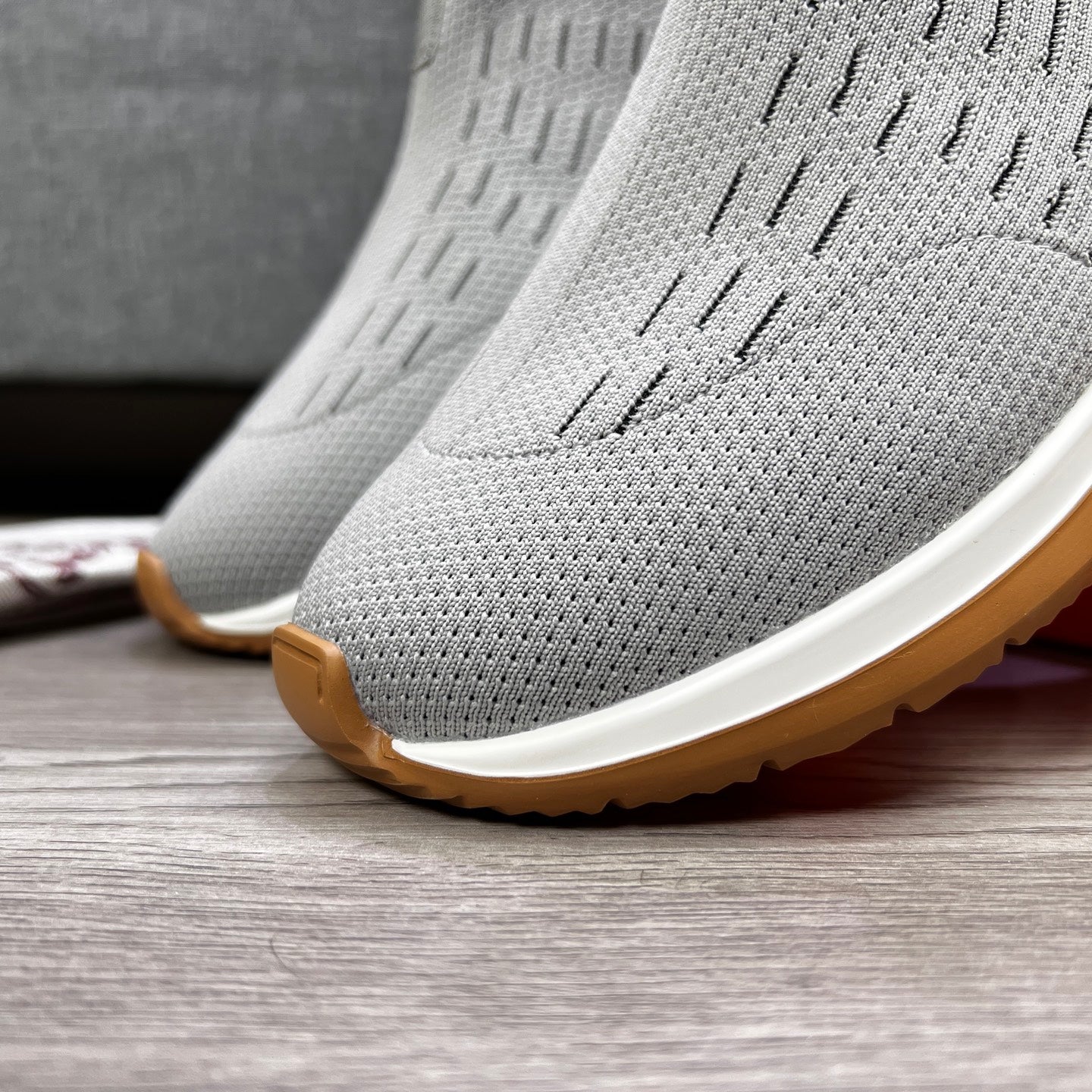 HM Men's Depart Slip-on Sneaker White Grey Knit Cowhide 263685