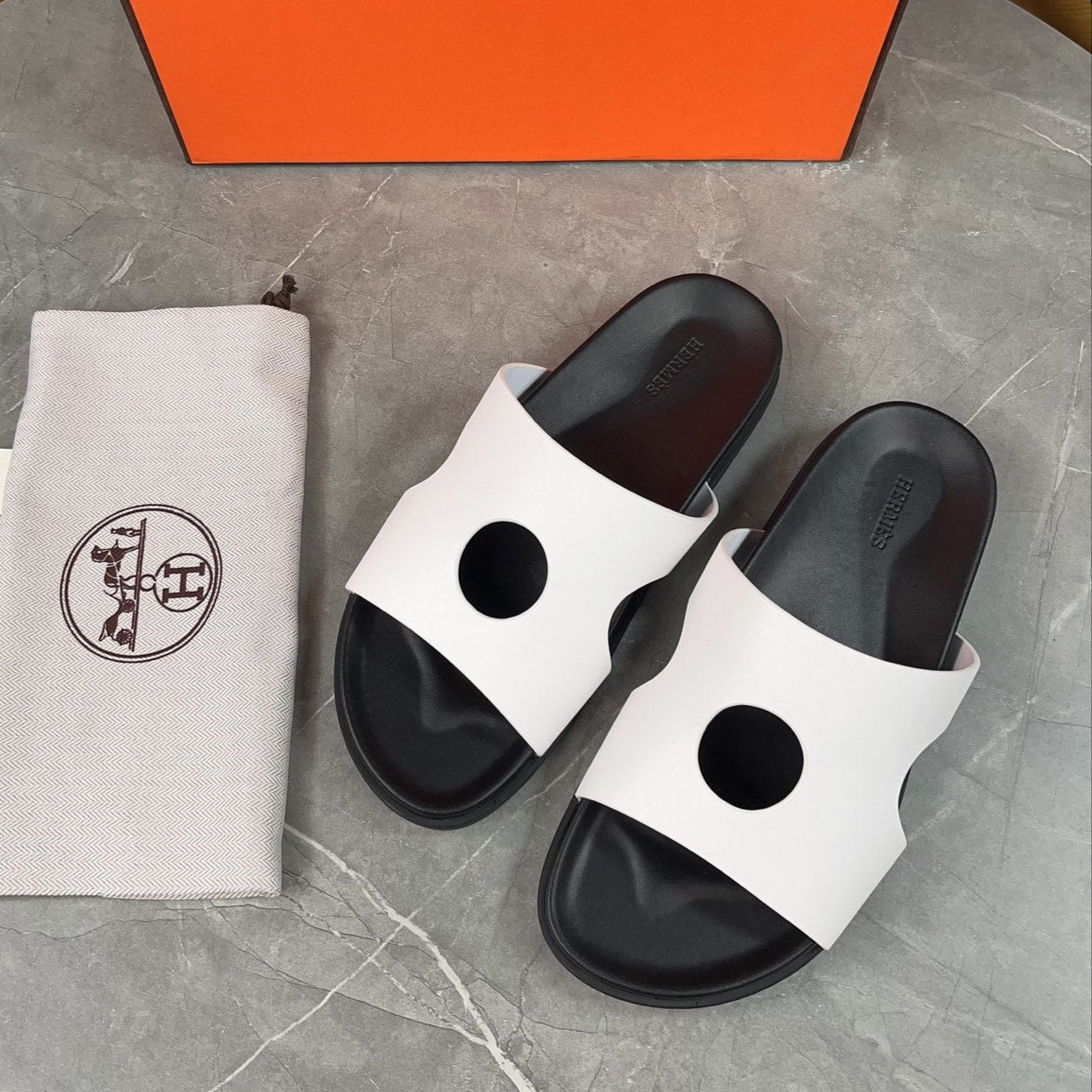 HM Men's Cross Strap Slide Beige Cowhide 544097