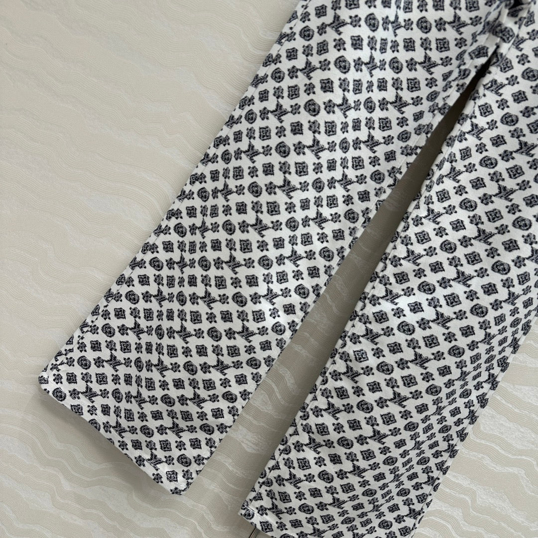 LV 25 Long Sleeve Mandarin Collar Shirt White Cotton