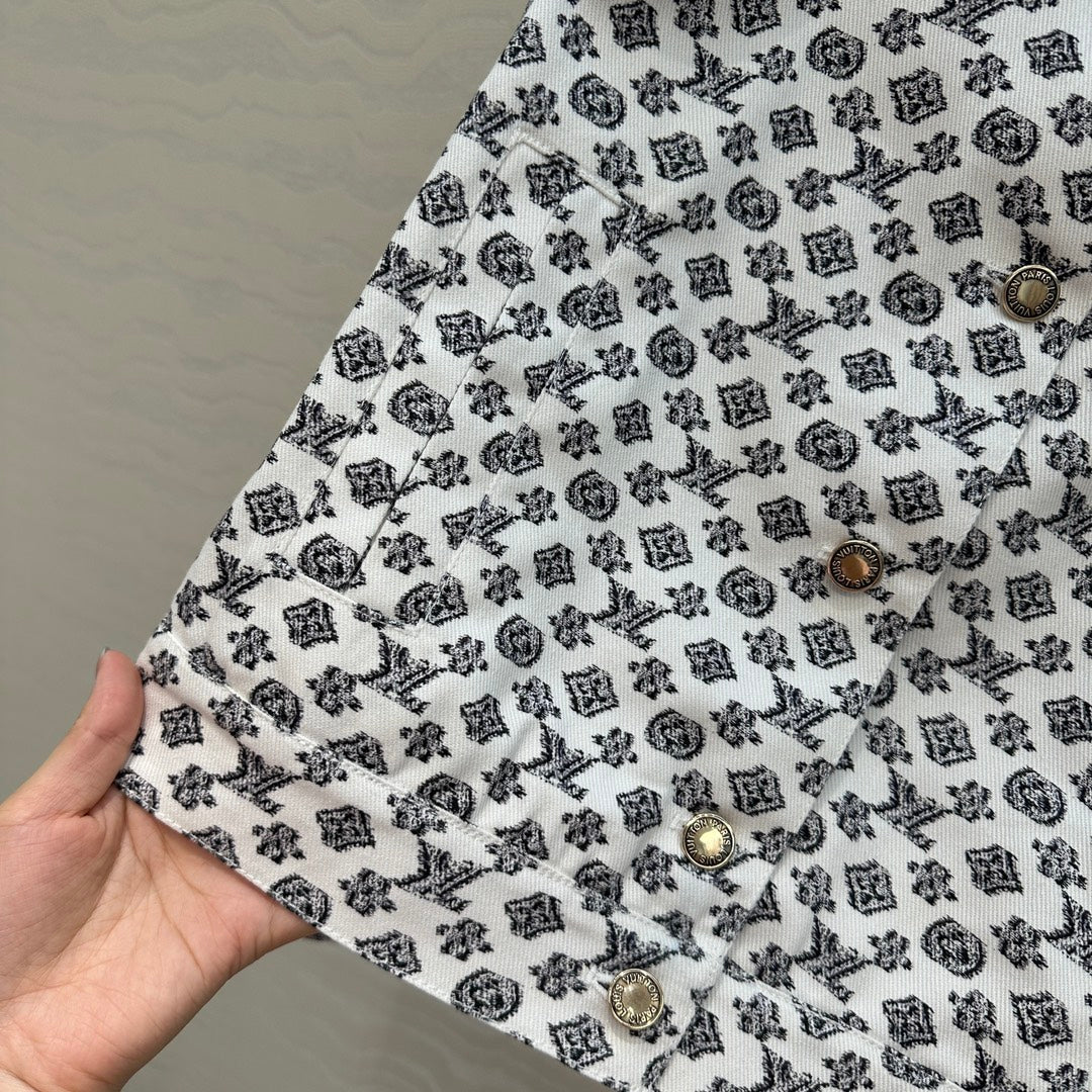 LV 25 Modern Logo Denim Vest Jacket Black White Poliester