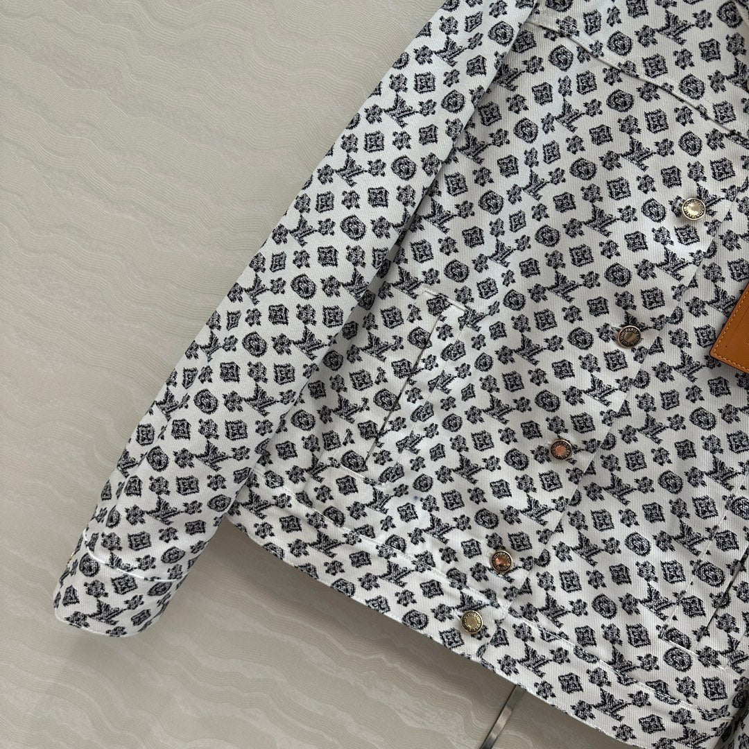 LV 25 Modern Logo Denim Long Jacket Black White Poliester