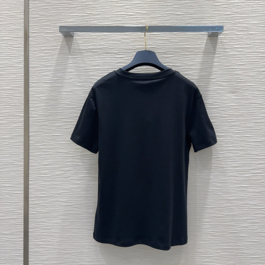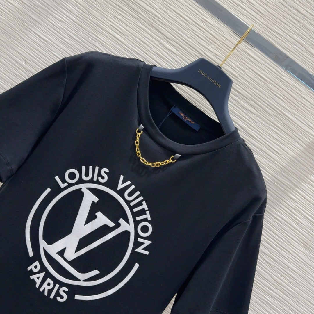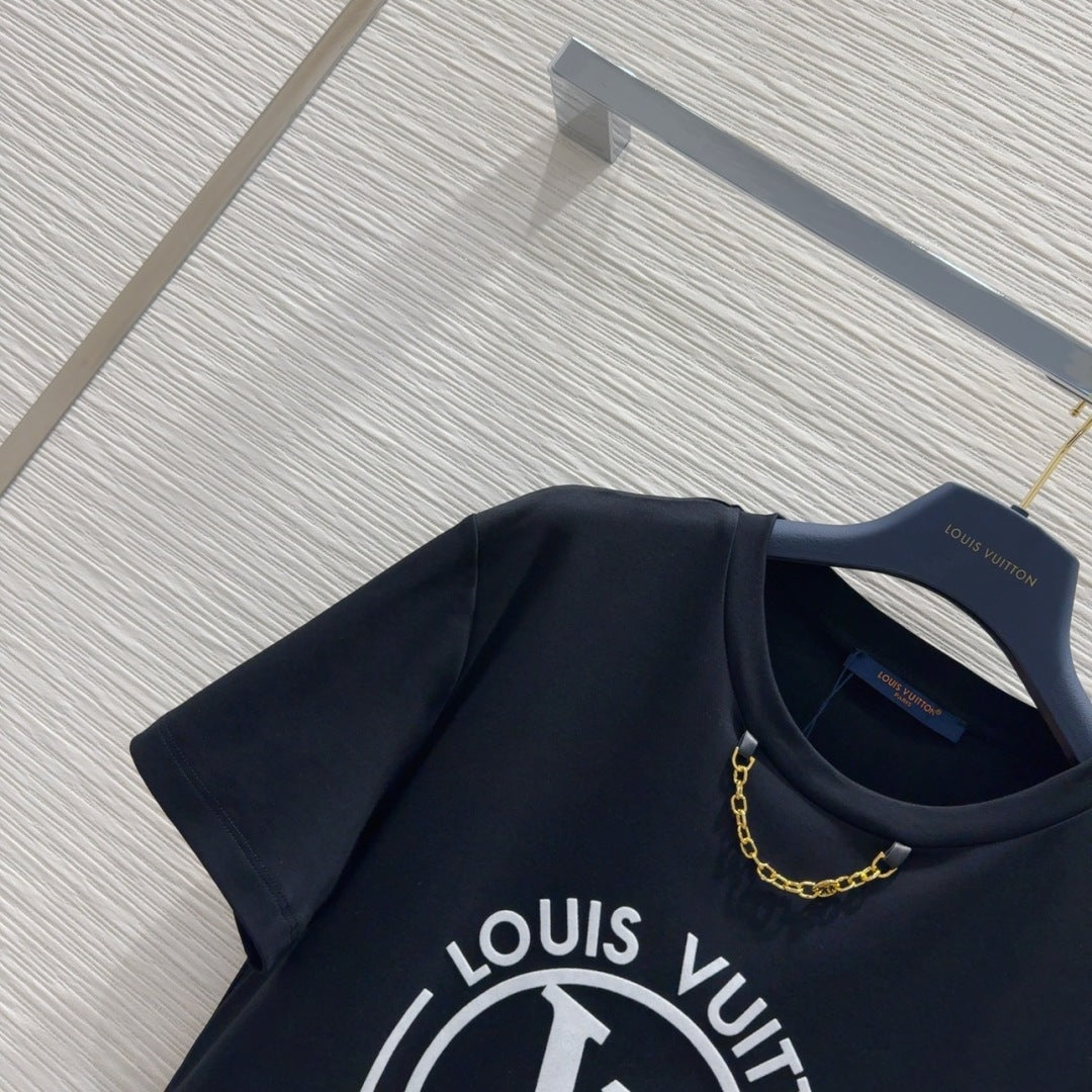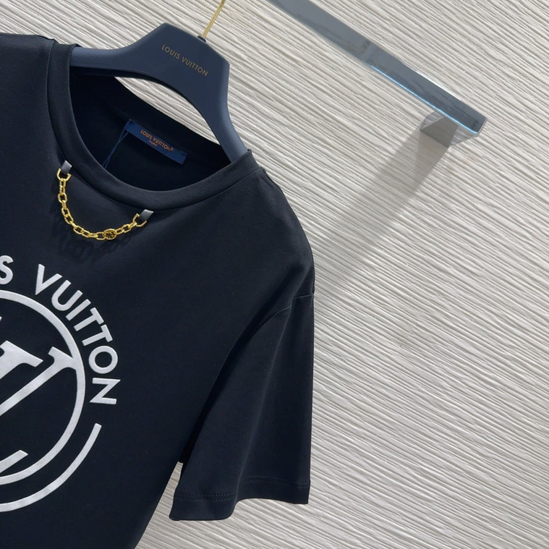 LV 25 Metal Zipper Decoration On The Left Shoulder T- Shirt Black Cotton