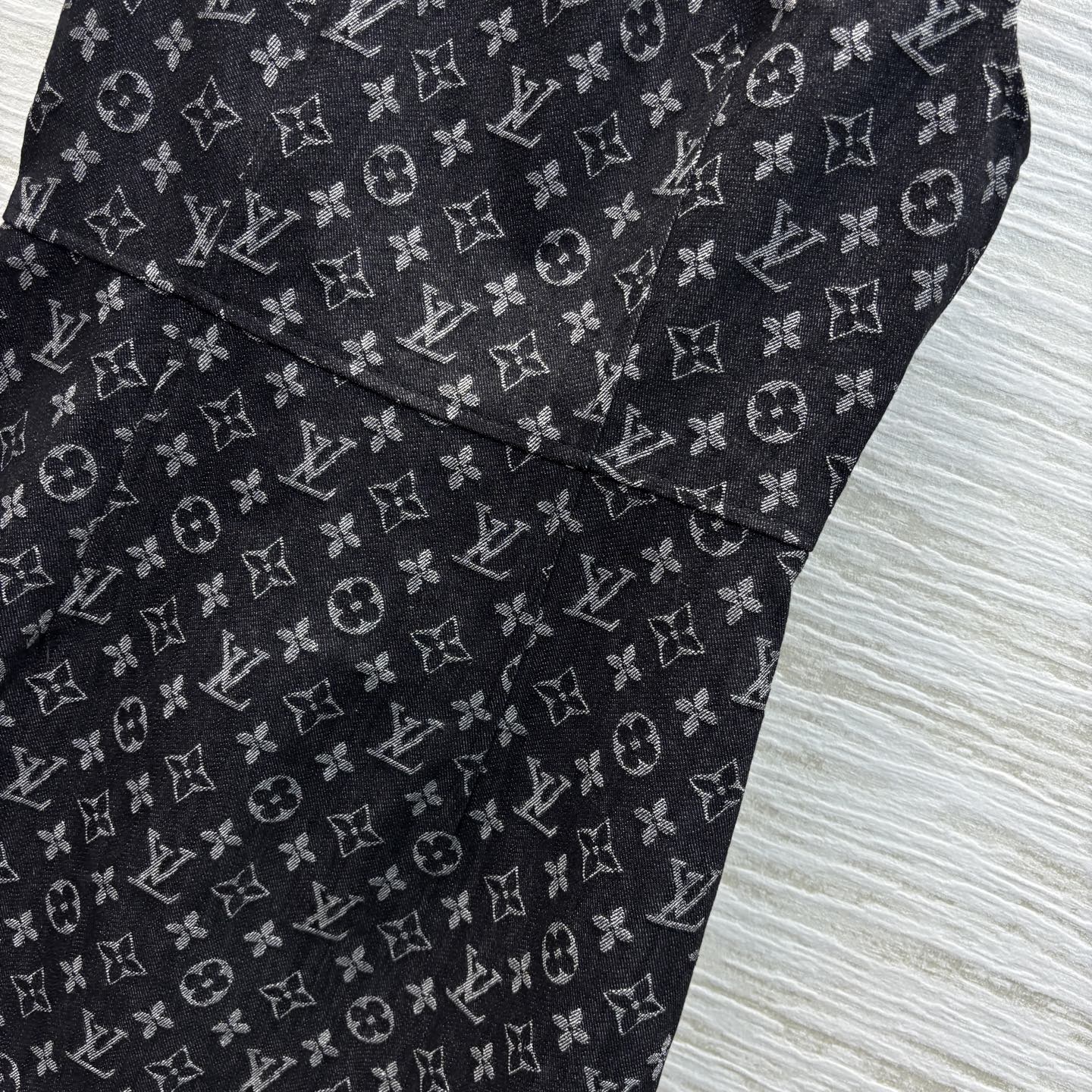 LV 25 Monogram Jacquard Logo Denim Dress Black Cotton