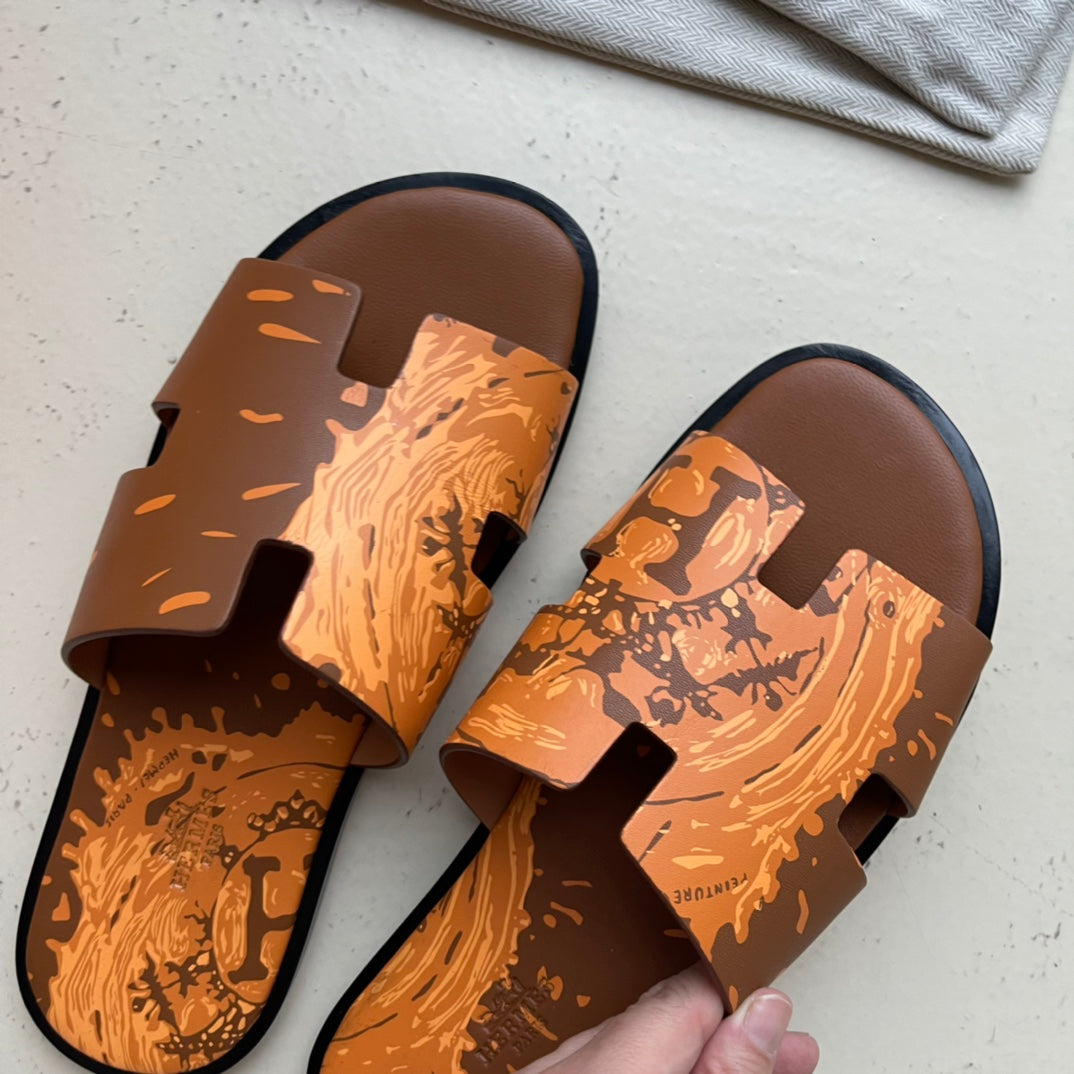 HM Men's Izmir Slide Orange Black Cowhide 743930