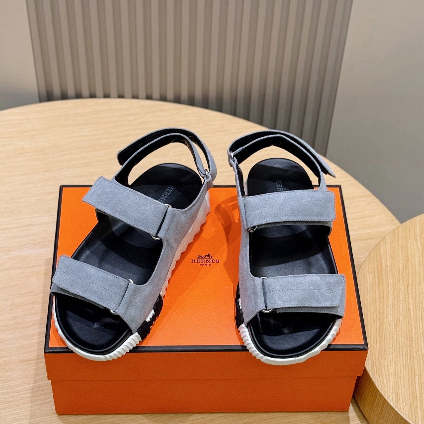 HM Men's Jackson Sandals Grey Calfskin Suede 722041