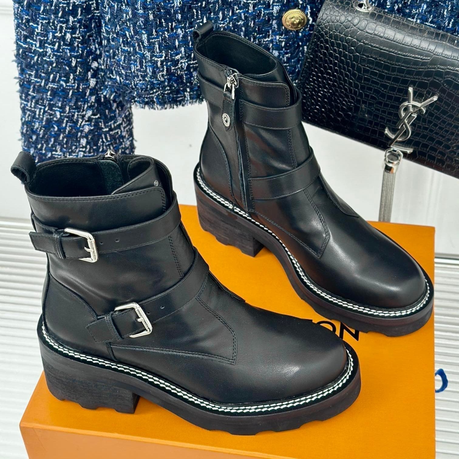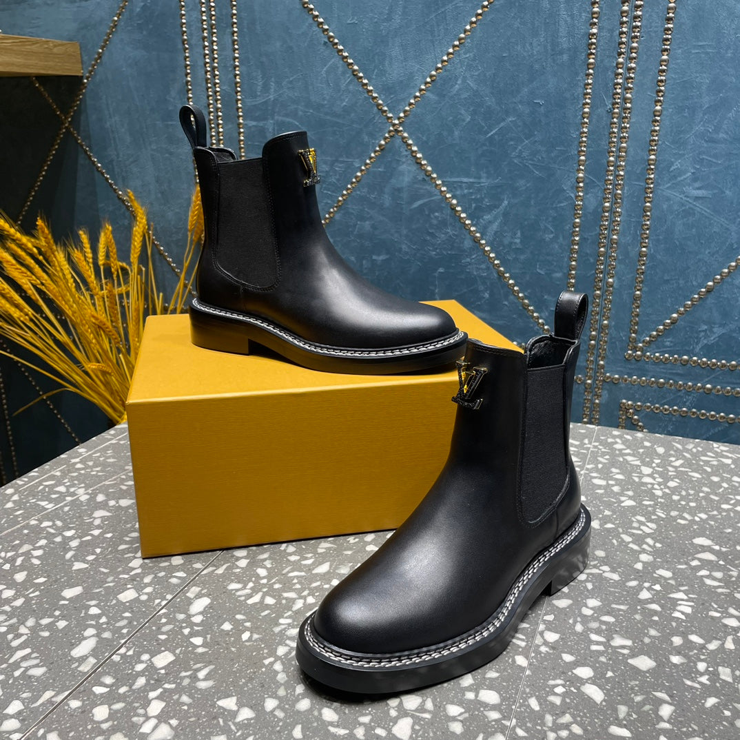 LV Beaubourg Ankle Boot Plain Black Calfskin