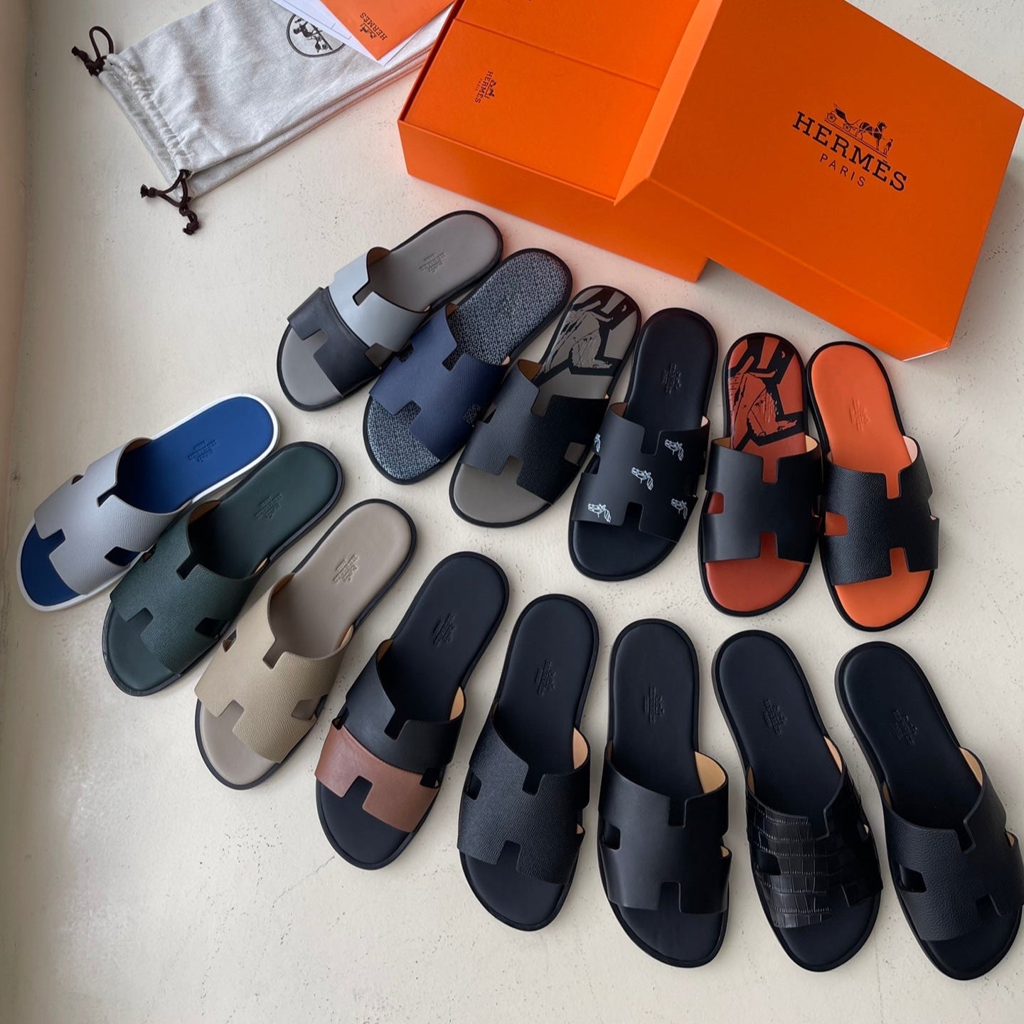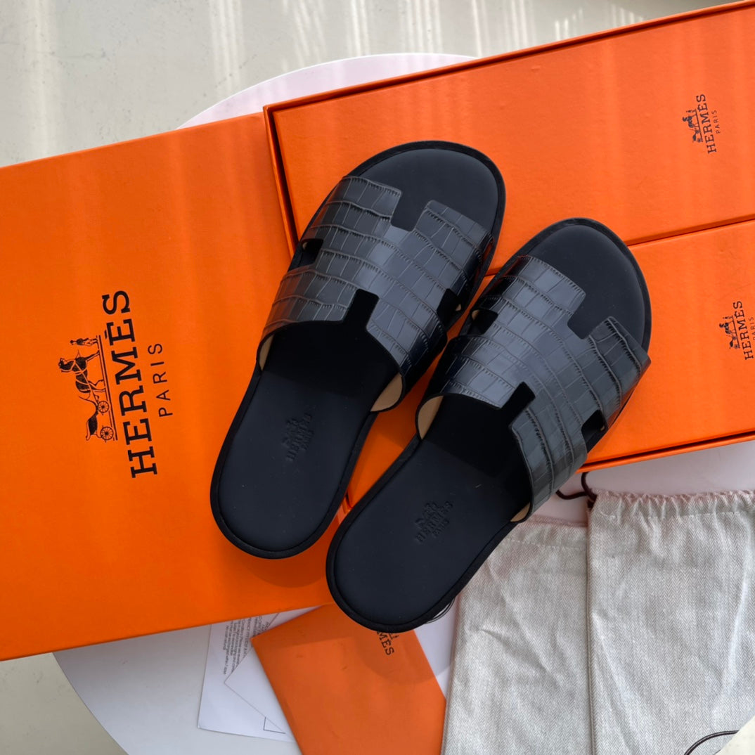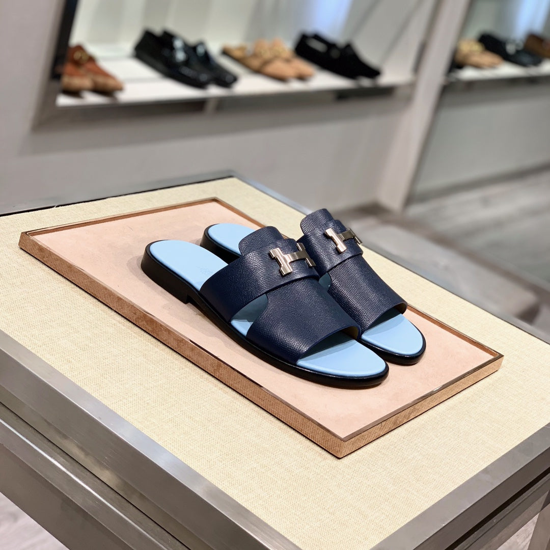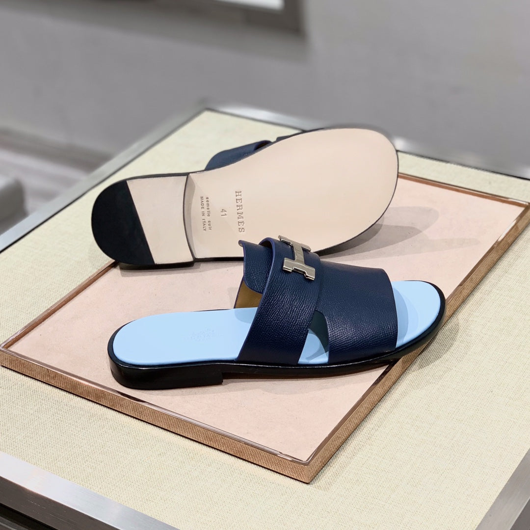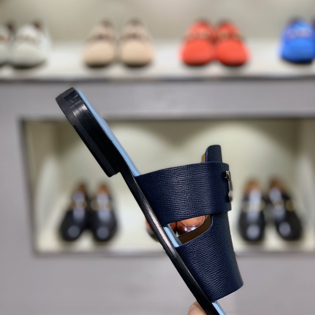 HM Men's Slide Navy Blue Cowhide Leather 588997