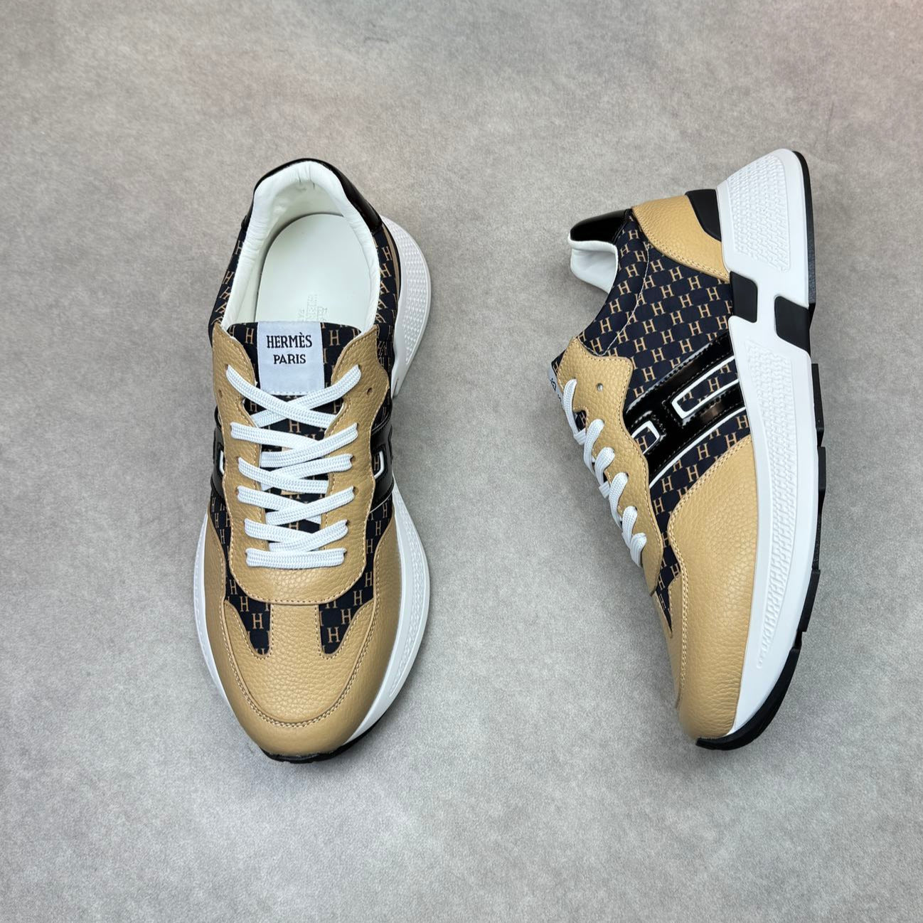 HM Men's Sneaker Beige Cowhide Fabric 603857