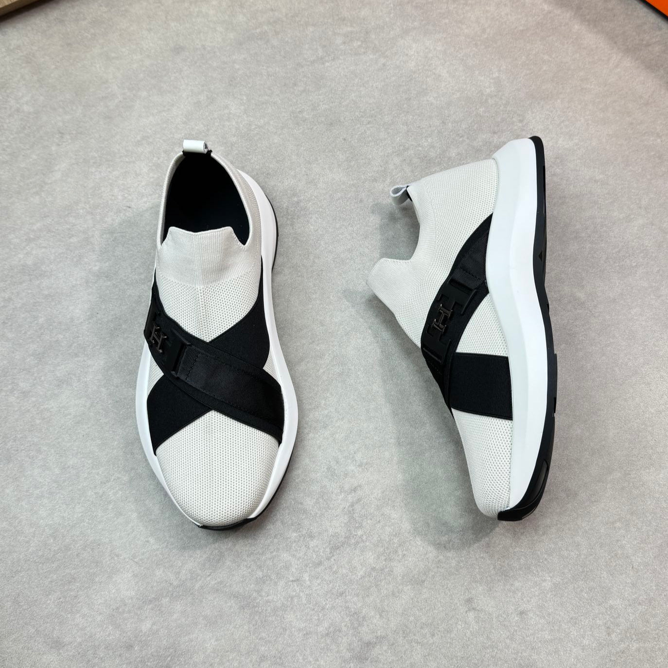 HM Men's Slip on Sneaker Black White Flyknit Fabric 690059