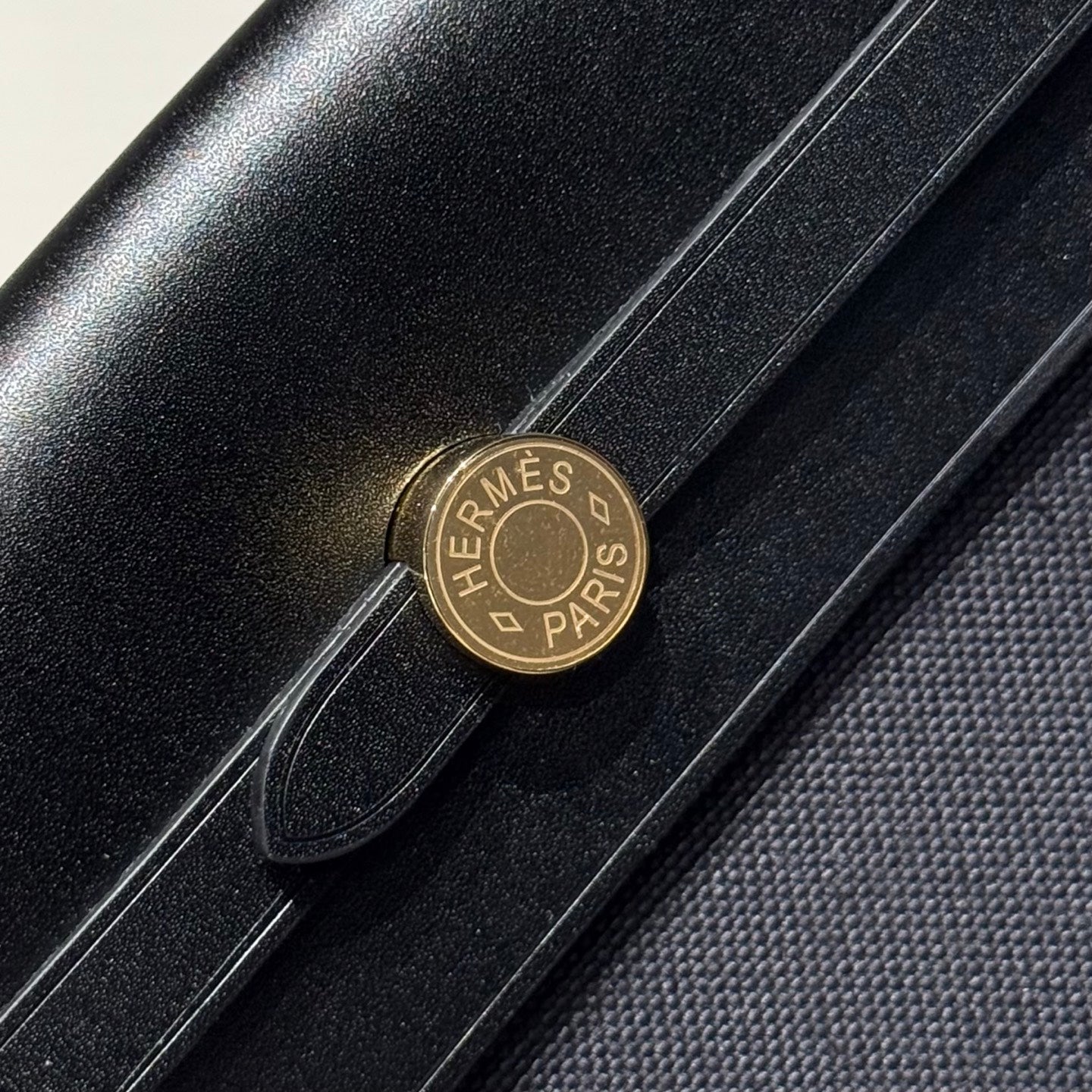 HM Mini Herbag Gold Buckle 20 Black Canvas and Hunter Cowhide 243211
