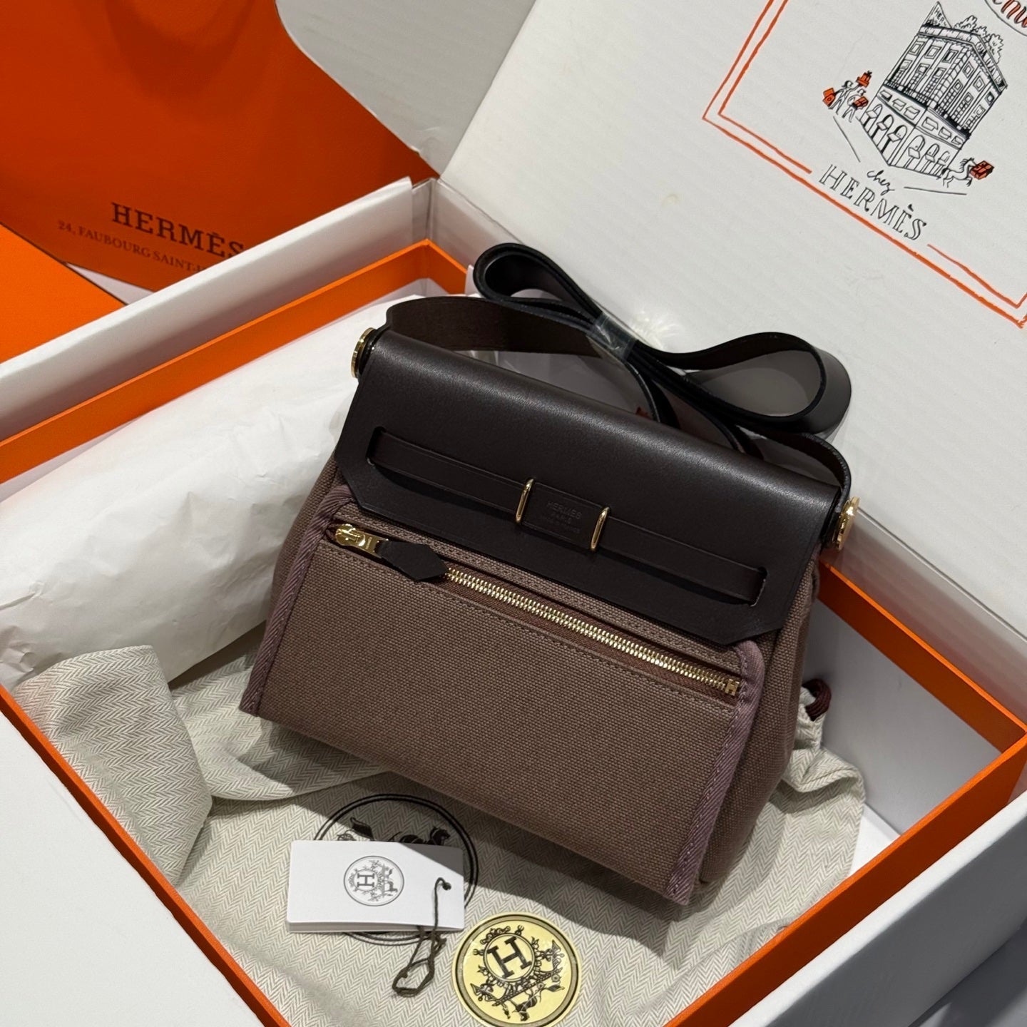 HM Mini Herbag Gold Buckle 20 Coffee Canvas and Hunter Cowhide 243300