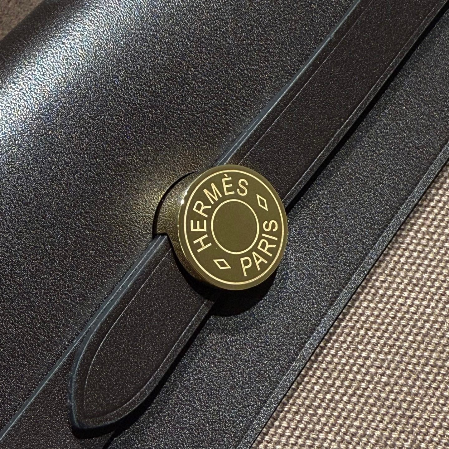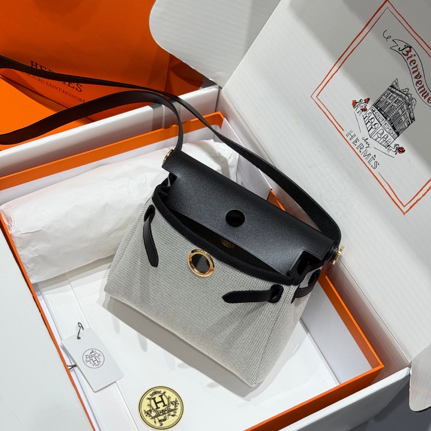 HM Mini Herbag Gold Buckle 20 Beige Grey Canvas and Hunter Cowhide 243285